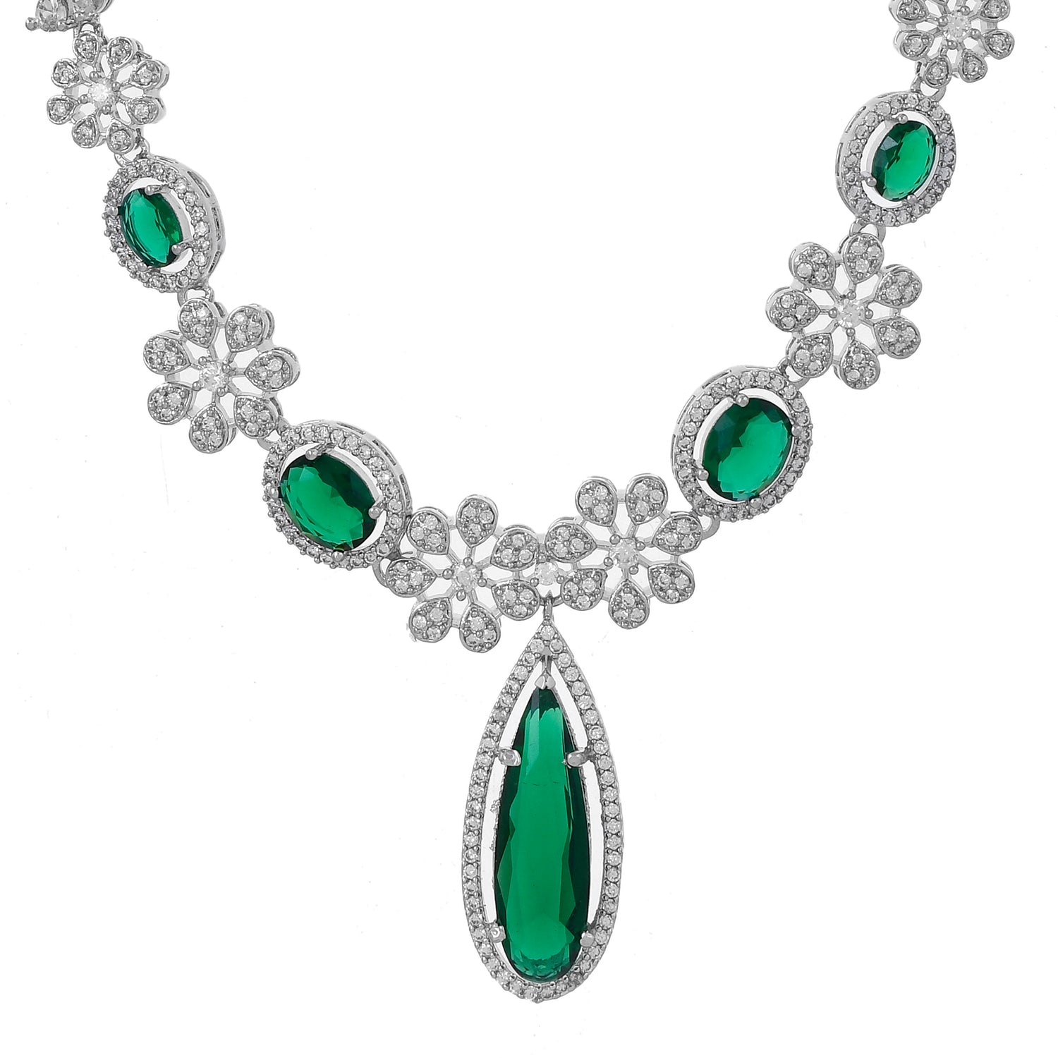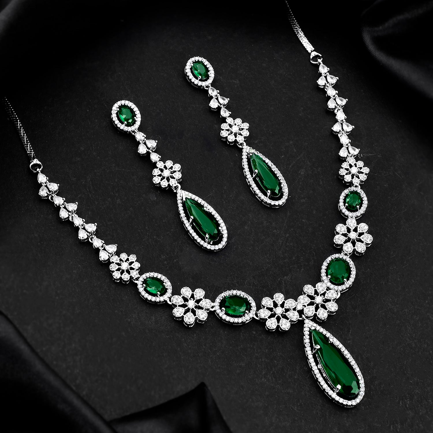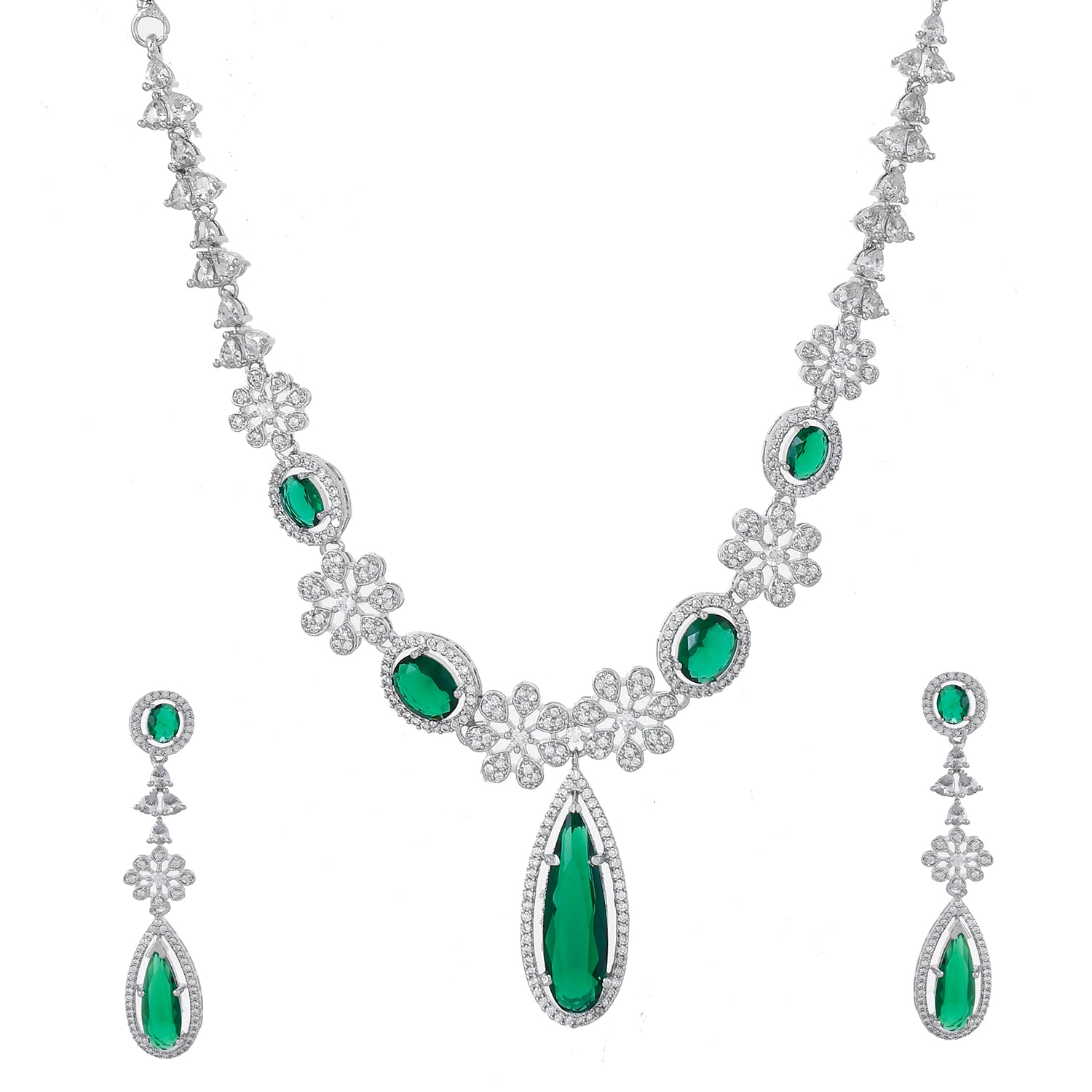 Sparkling Essentials Emerald Glam American Diamond Necklace Set