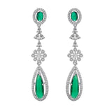 The Emerald Glam American Diamond Necklace Set is a stunning piece from the Sparkling Essentials collection, crafted with meticulous attention to detail. Made from high-quality brass and plated with rhodium, this necklace set features exquisite green emerald-like stones surrounded by shimmering American diamonds. The intricate floral design adds a touch of elegance and sophistication, making it perfect for party wear, weddings, and festive occasions. The vibrant green color of the stones beautifully complements the sparkling diamonds, creating a glamorous look that is sure to turn heads. This necklace set is an ideal gift for women, whether for Valentine's Day, Diwali, Rakshabandhan, or Christmas. It pairs wonderfully with both western and traditional outfits, adding a touch of luxury to any ensemble.