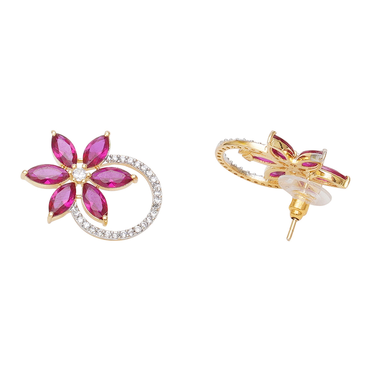 Floral motif mangalsutra set with zirconia gemstones. Made from brass, the gold plated set can be paired with a wide range of looks and outfits.