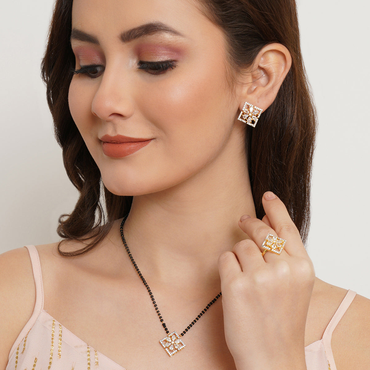 Sparkling Essentials Floral Pattern CZ Mangalsutra Set