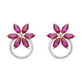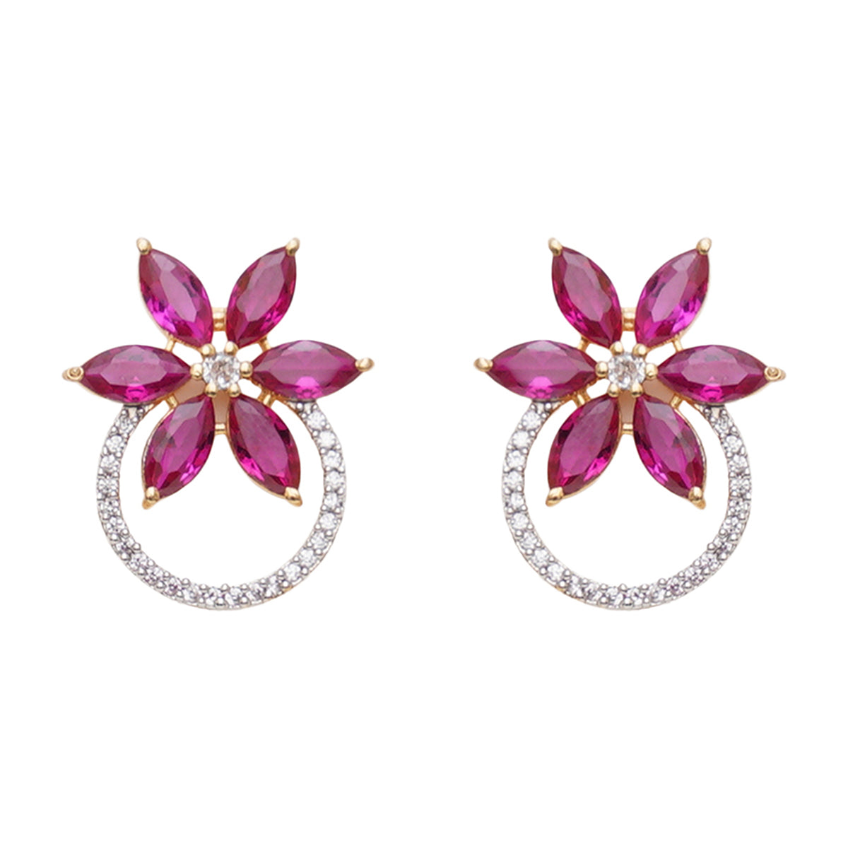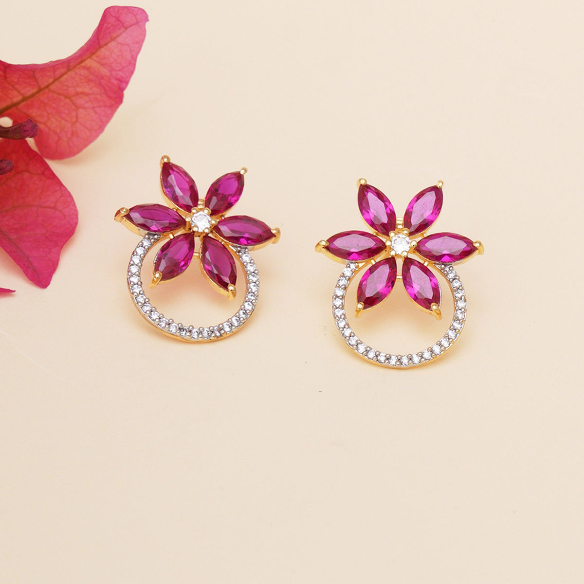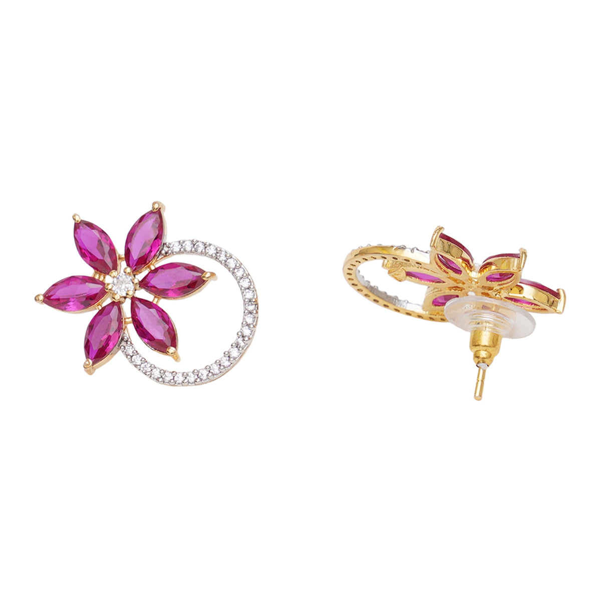 Floral stud earrings made from brass, with zirconia gemstones and yellow gold plating. A good match for formal and casual looks.