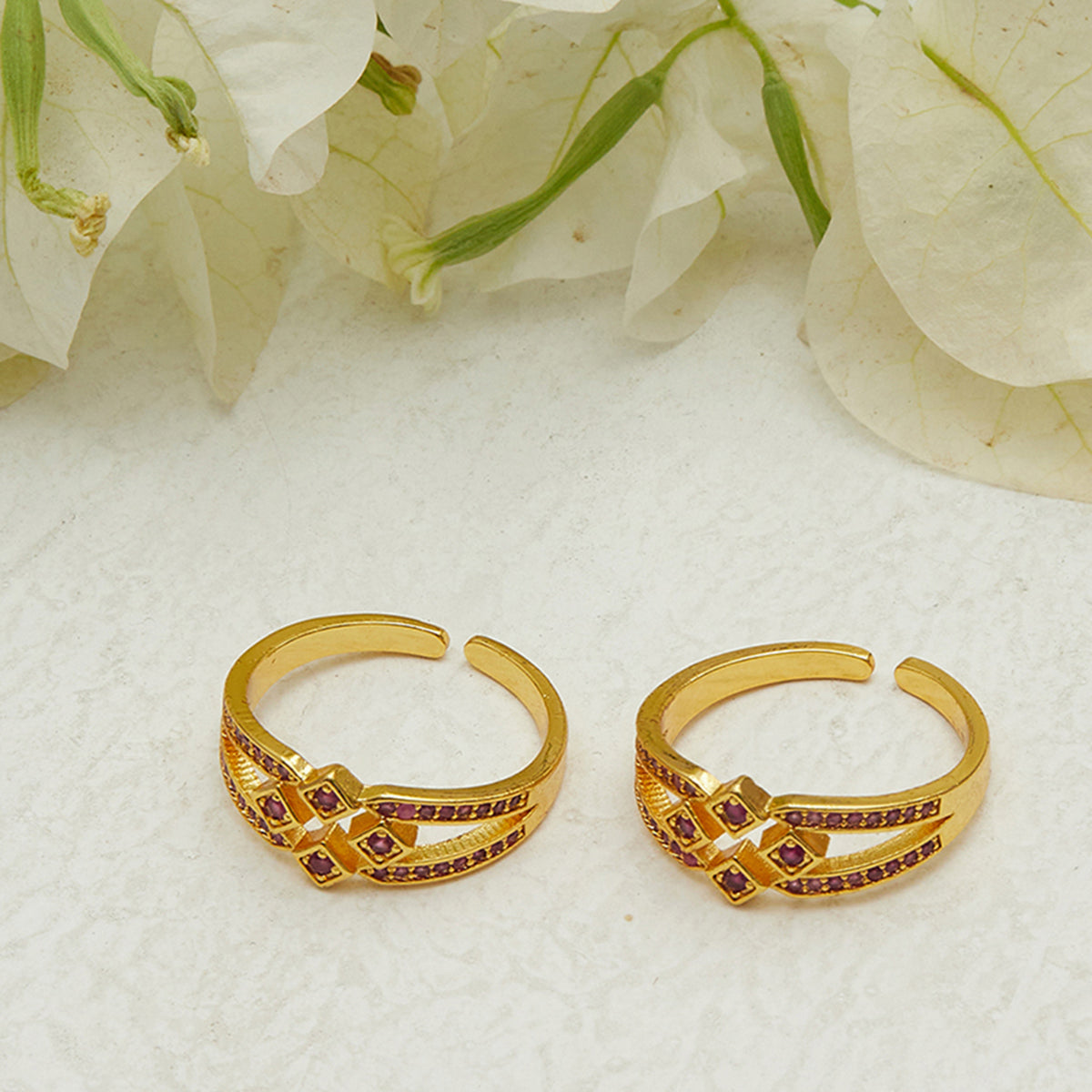 This festive season enhances your beauty by opting for these toe rings from the house of Voylla. The trendy pair of toe rings is made of brass and has an elegant embellishment in the center with CZ sparkling. These toe rings can be worn with a beautiful ethnic dress for a perfect look.