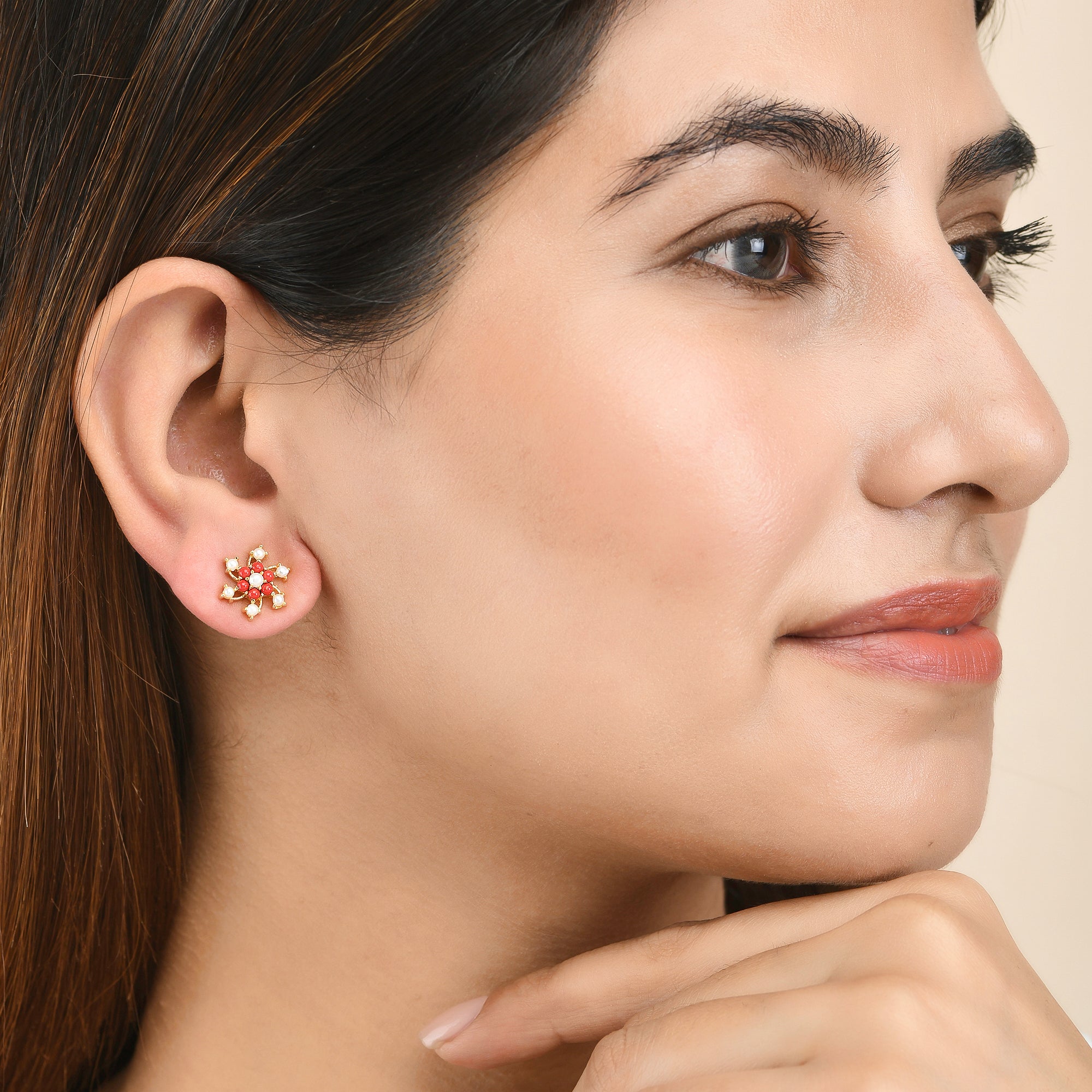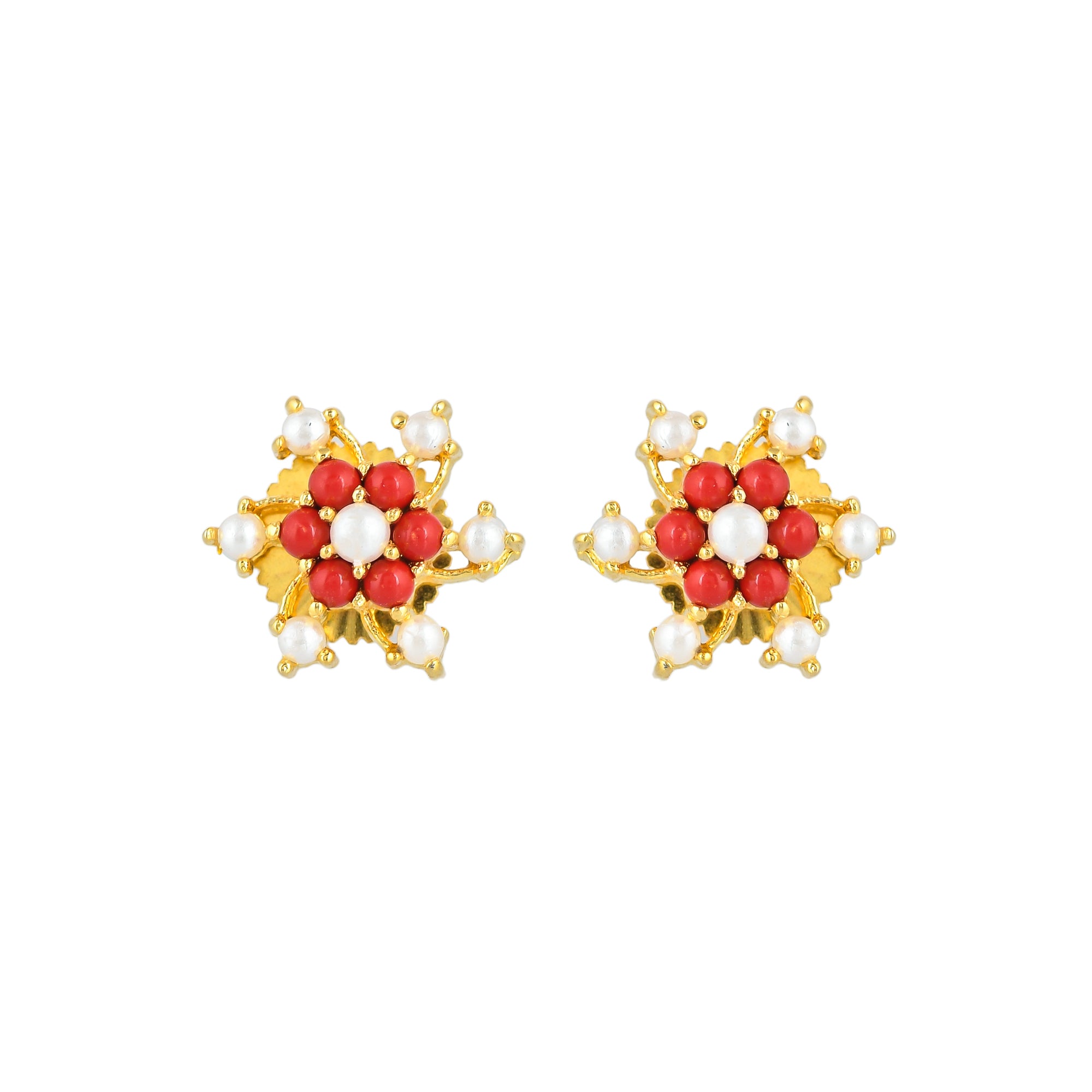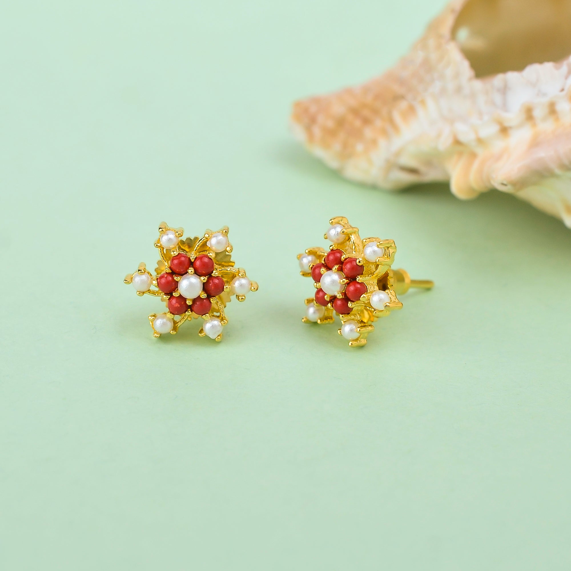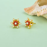 Sparkling Essentials Minimalistic Gold Plated Pearl Beaded Zircons Stud Earrings