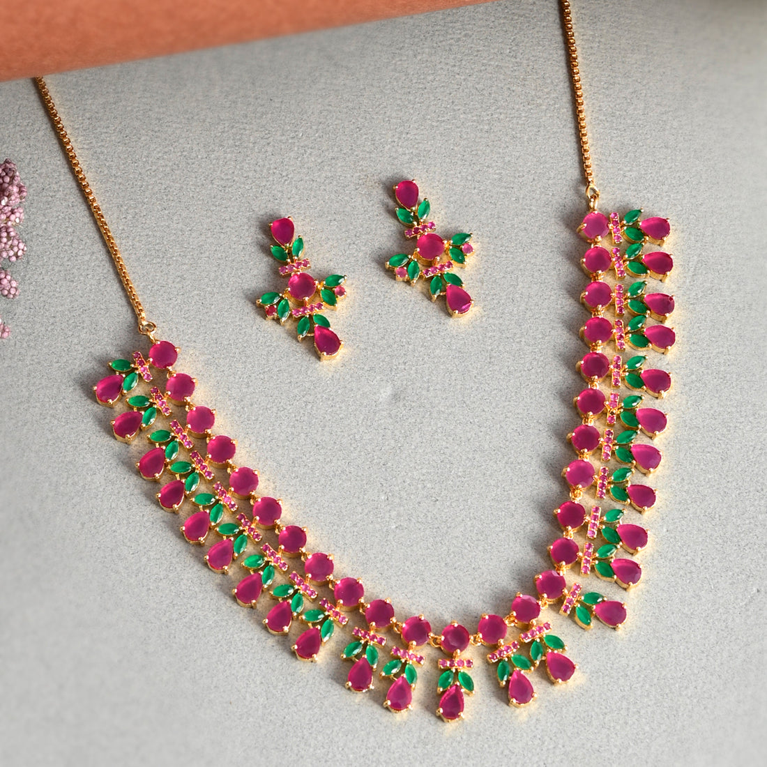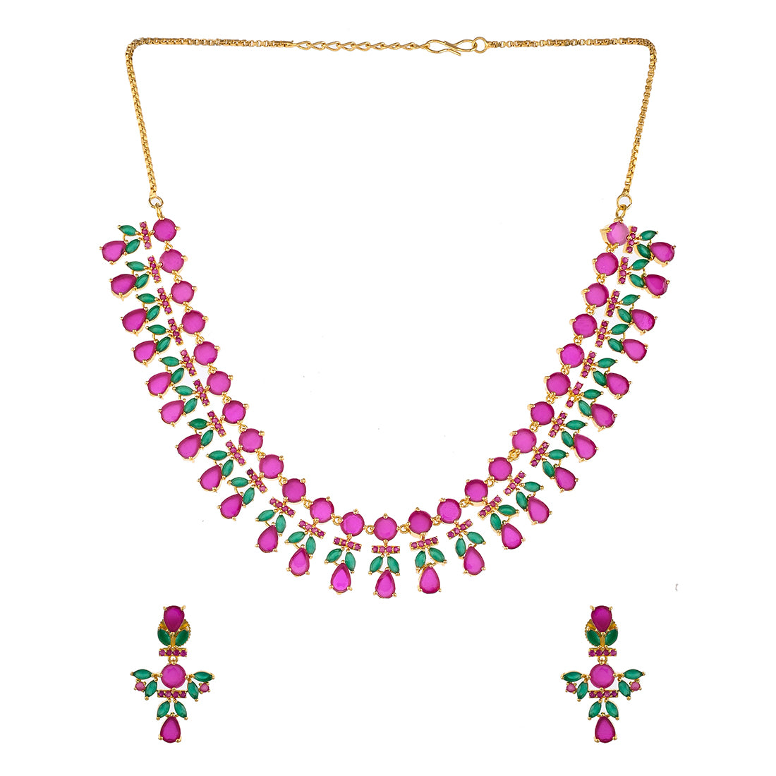 Sparkling Essentials Pink and Green Zircons Gems Jewellery Set