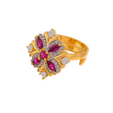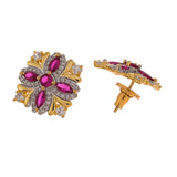 Mangalsutra box set with marquise cut pink and white zirconia gems. The beaded mangalsutra, earrings and adjustable ring have been crafted from brass. Oxidised silver plated, lightweight and versatile.