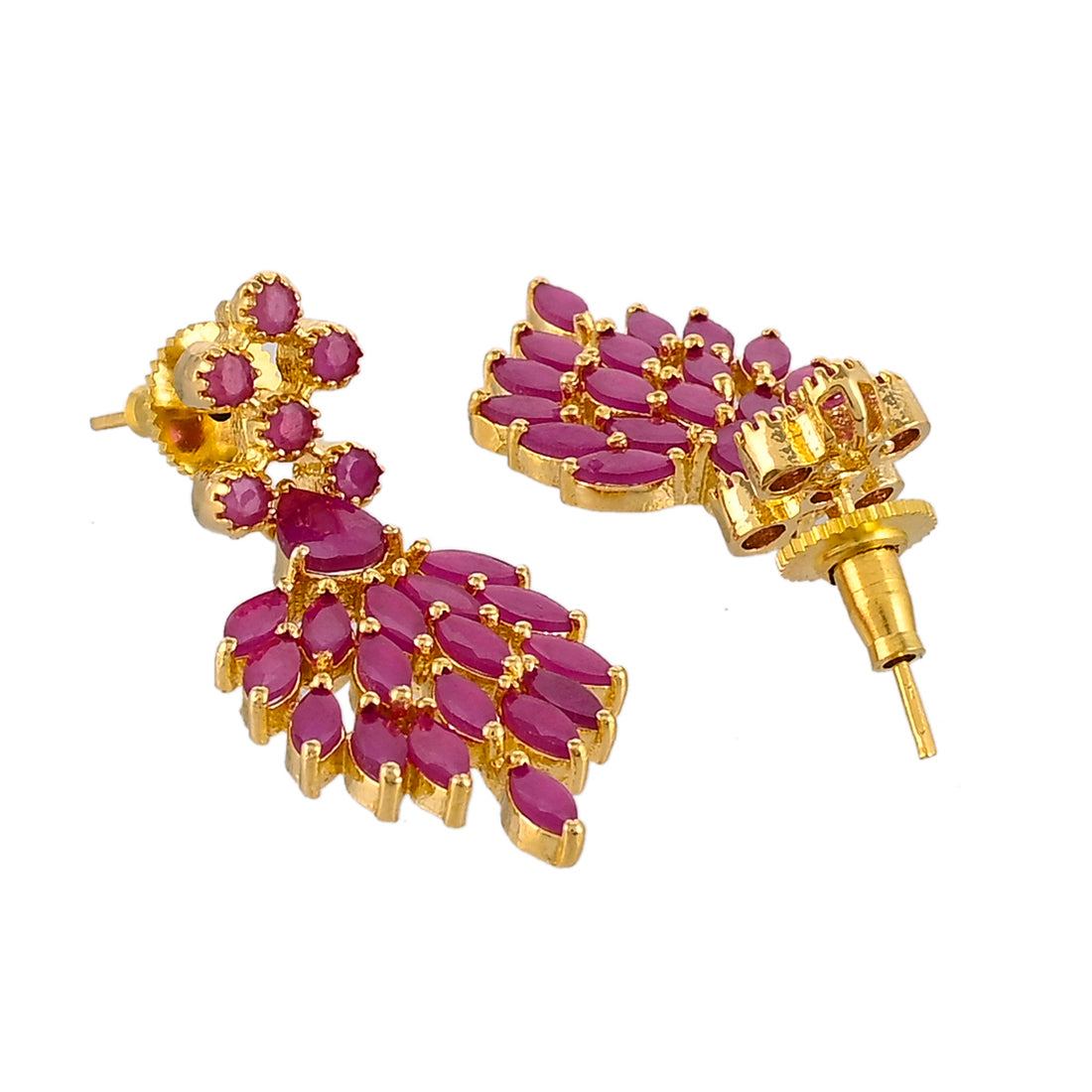 Pink drop cut zirconia gemstones jewellery set. Gold plated and crafted from brass. Pair with ethnic looks.
