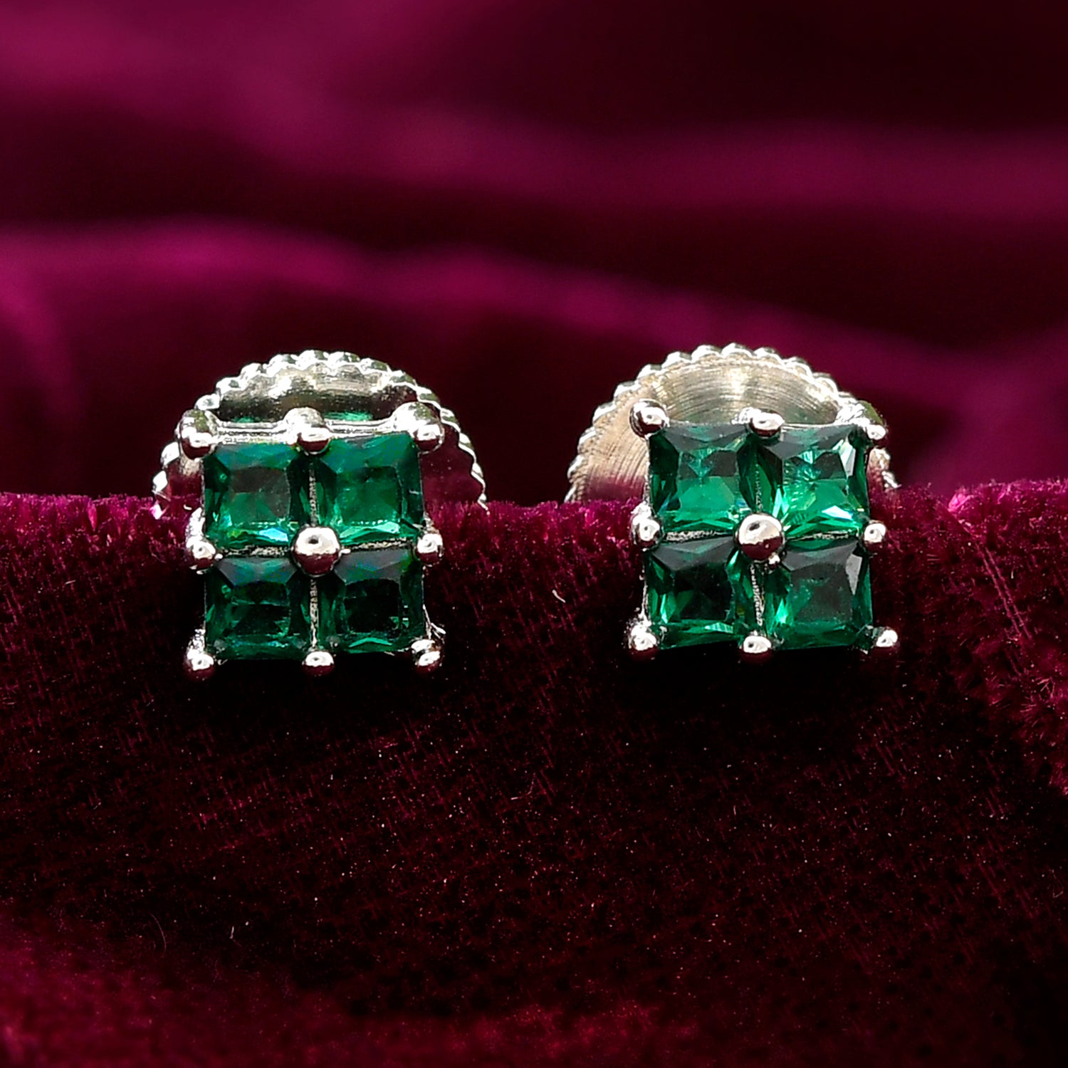 Elevate your jewelry collection with the exquisite Regalia Stud Earrings from the Sparkling Essentials Collection. Crafted with premium brass and rhodium plating, these earrings feature radiant, square-cut emerald stones reminiscent of American diamonds. They offer a timeless appeal that complements both everyday and special occasions. Whether you're donning them for a festive event, a wedding, or a casual day at work, these earrings add a touch of sophistication to any outfit. Their versatile design makes them suitable for western, ethnic, and workwear ensembles. These earrings make a delightful gift for women on special occasions such as Valentine's Day, Diwali, Rakshabandhan, Christmas, and New Year. Surprise your loved ones – be it your girlfriend, wife, mother, sister, or friend – with these trendy, fashionable earrings that embody elegance and charm.