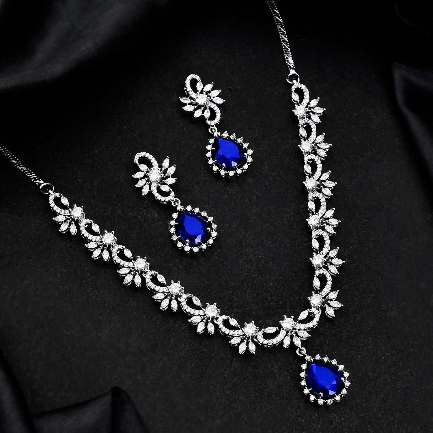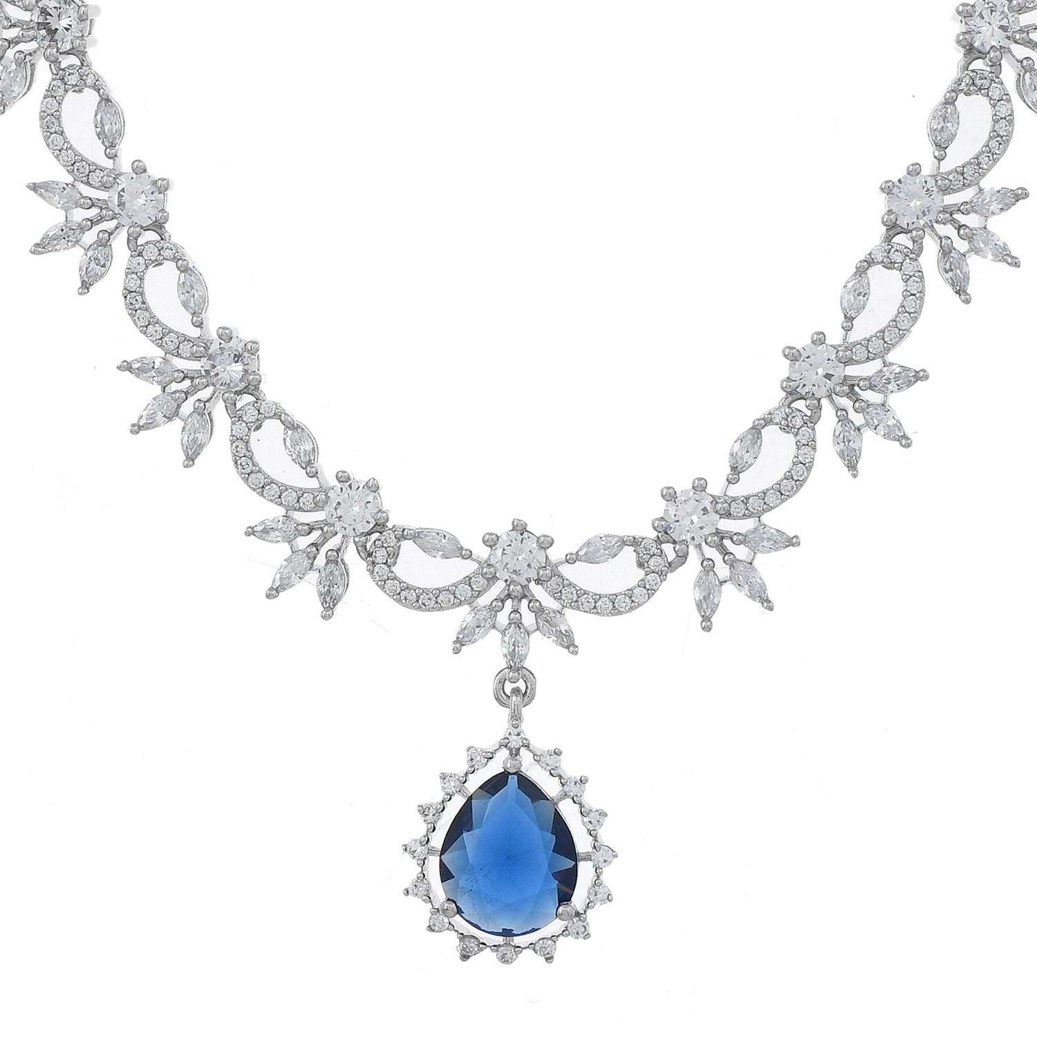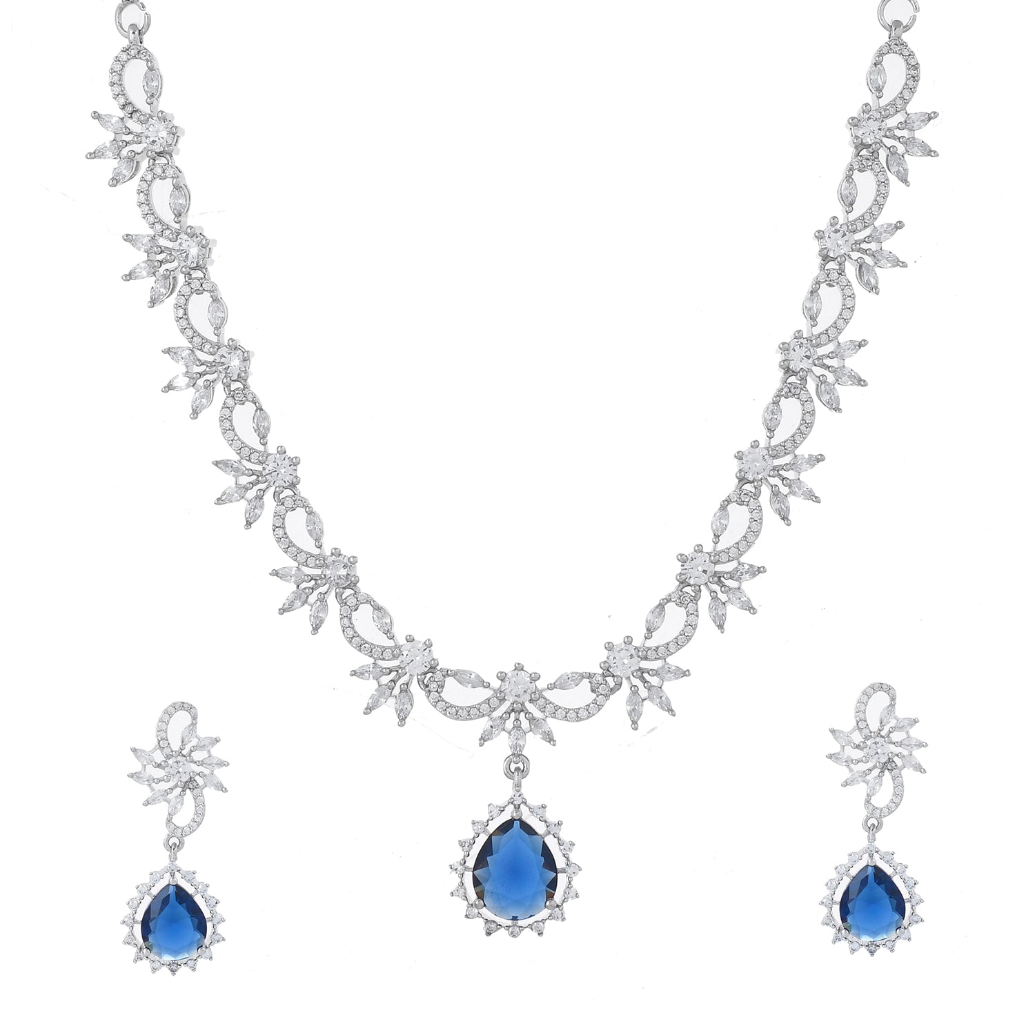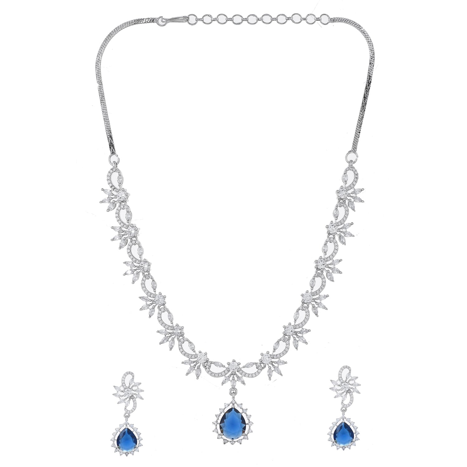 Sparkling Essentials Sapphire Blossom American Diamond Necklace Set