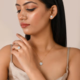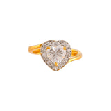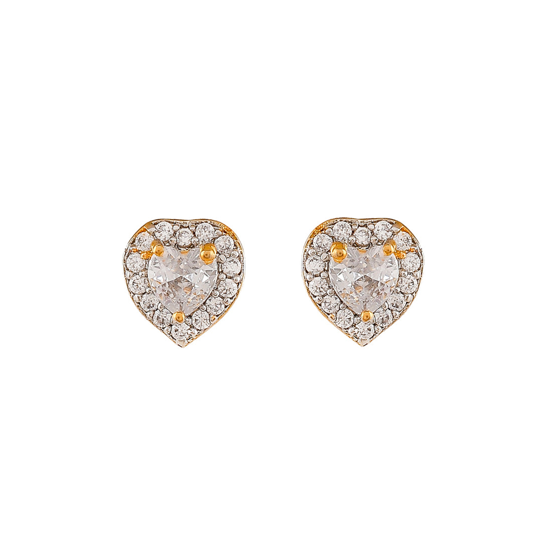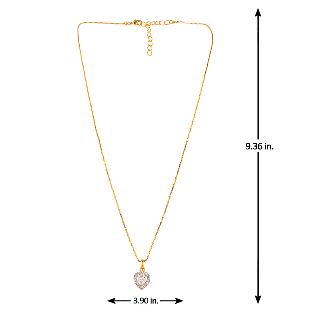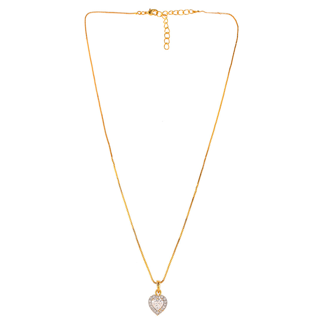 A complete jewellery box set, consisting of pendant with Chain, earrings and ring. Made from brass and two tone plated, each piece has been embellished with a cluster setting, heart shaped white zirconia gemstone. Pair with any of your favourite outfits.