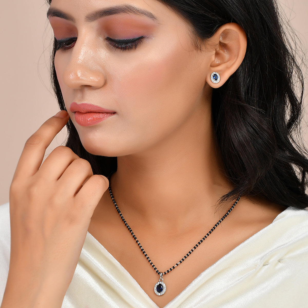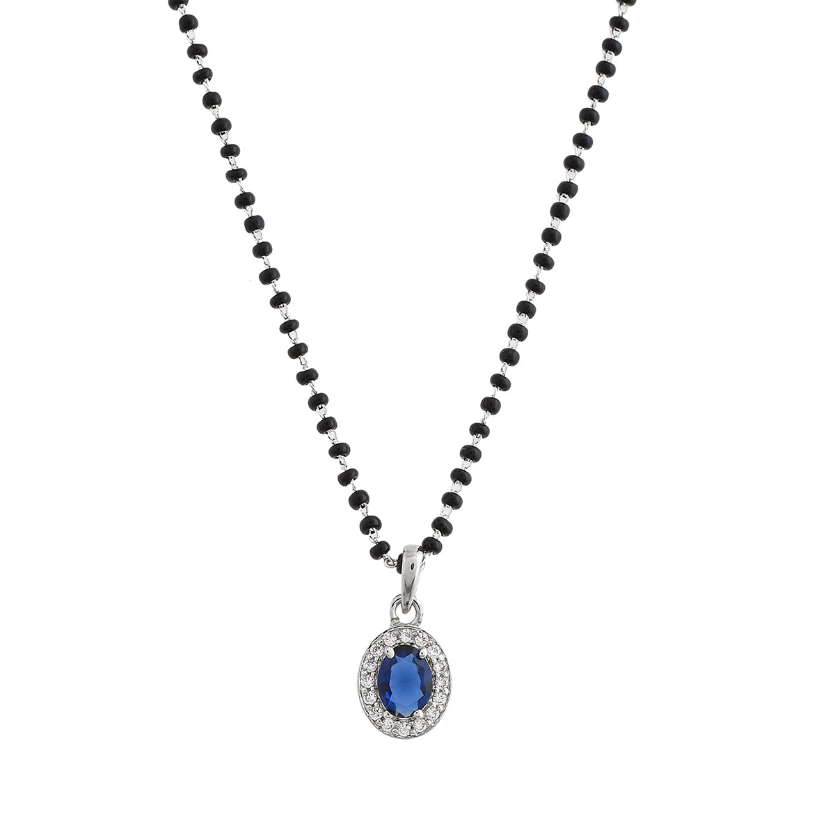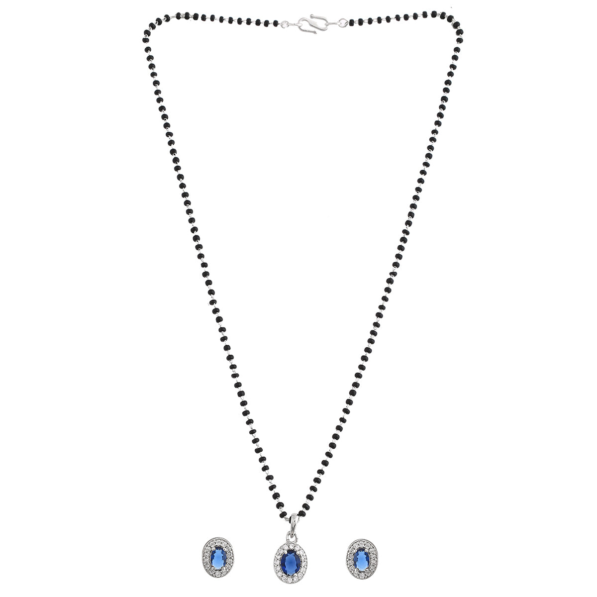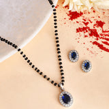 Sparkling Essesntials Blue Oval Silver Mangalsutra Set