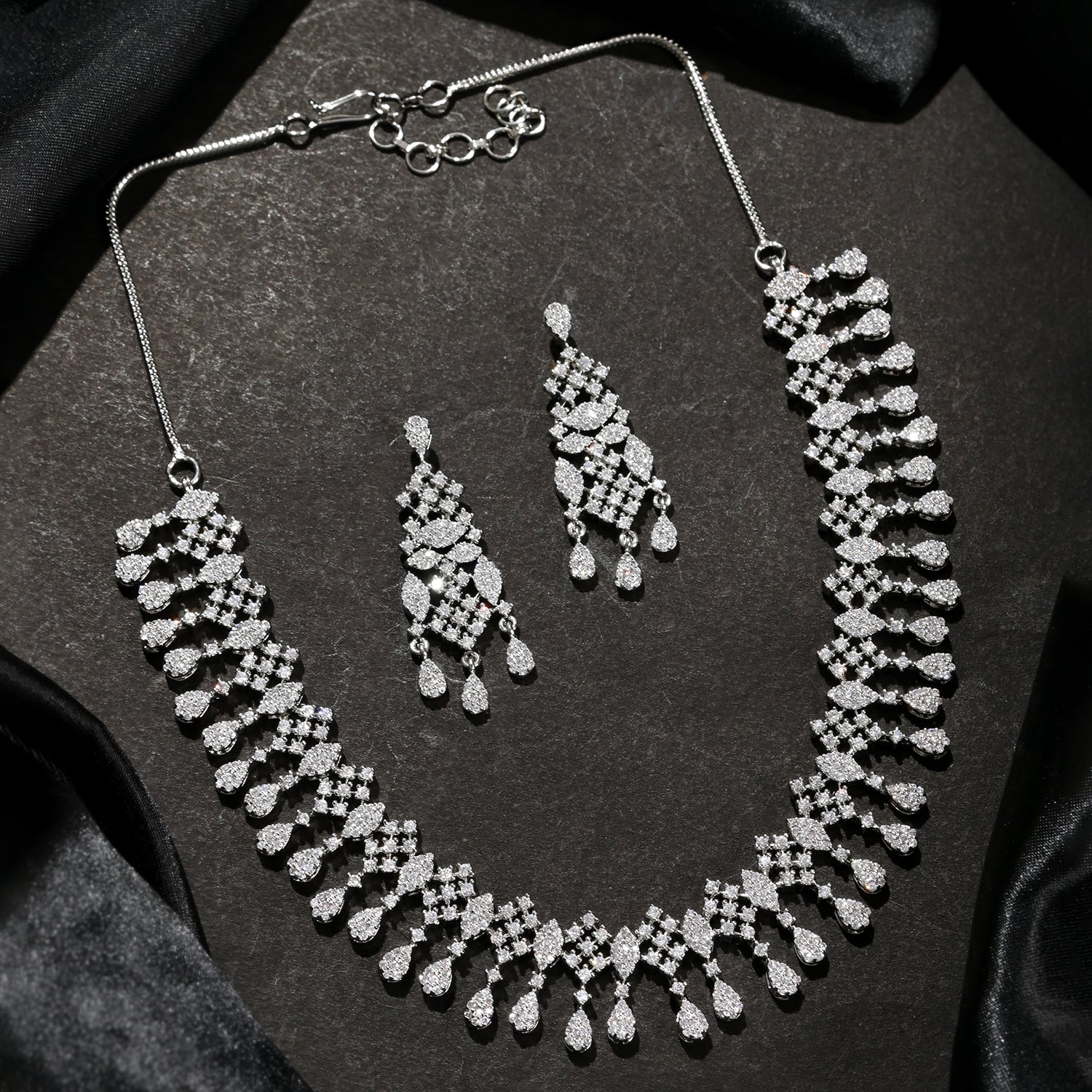 Sparkling Opulance Elegant Teardrop American Diamond Necklace Set