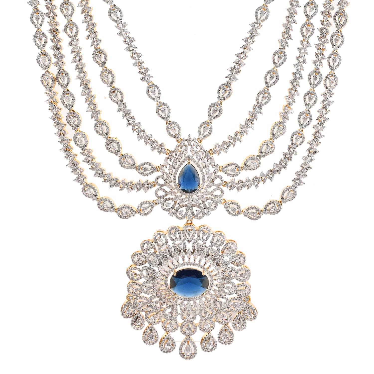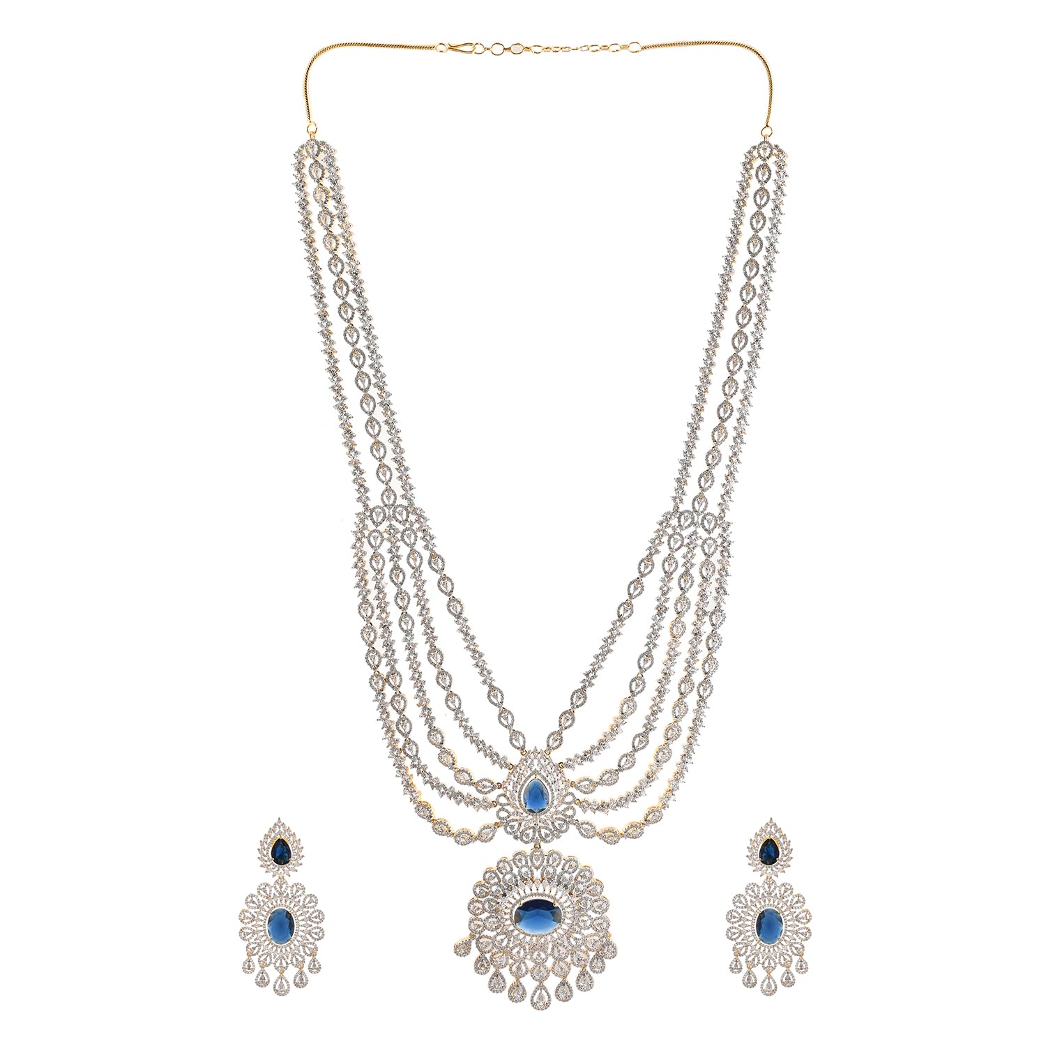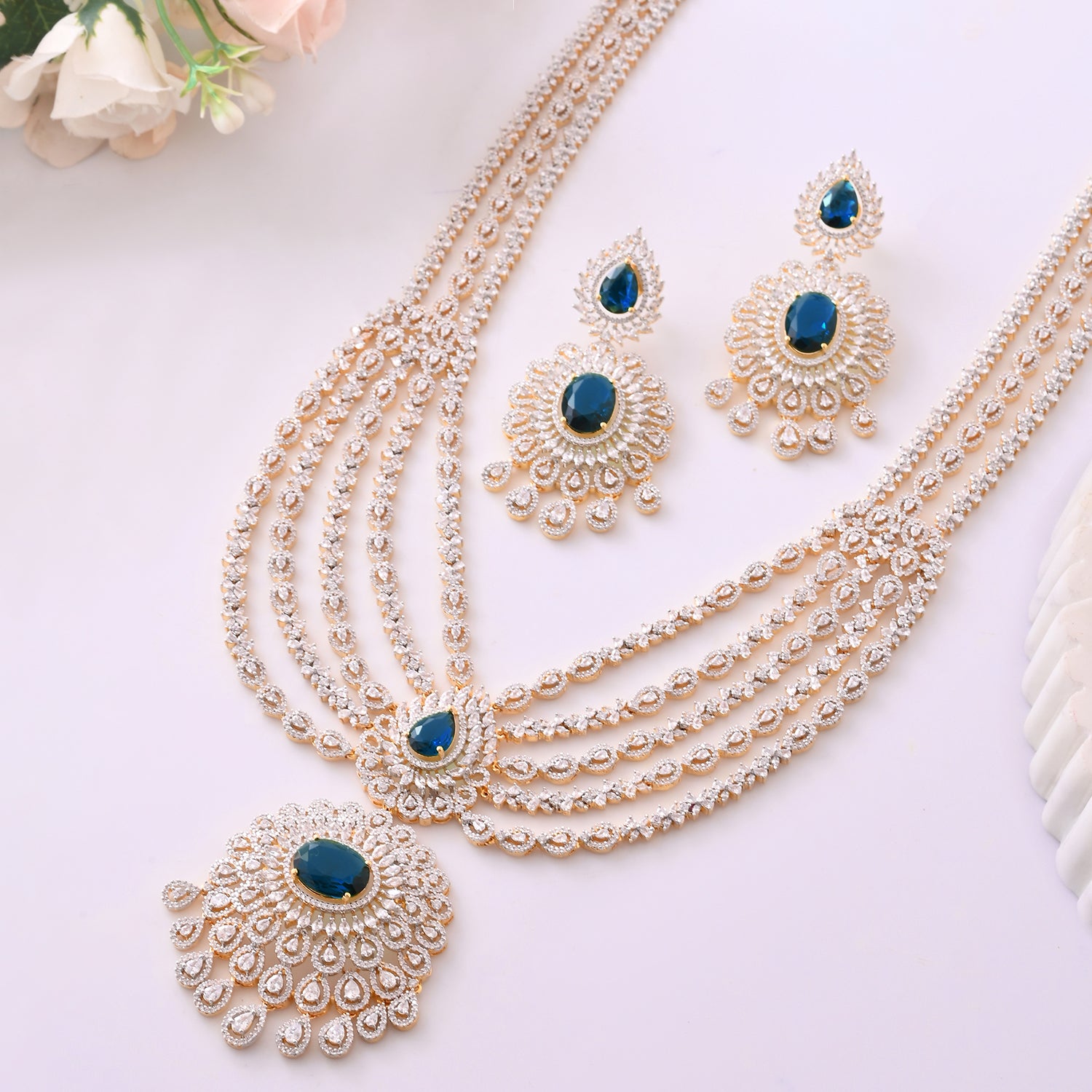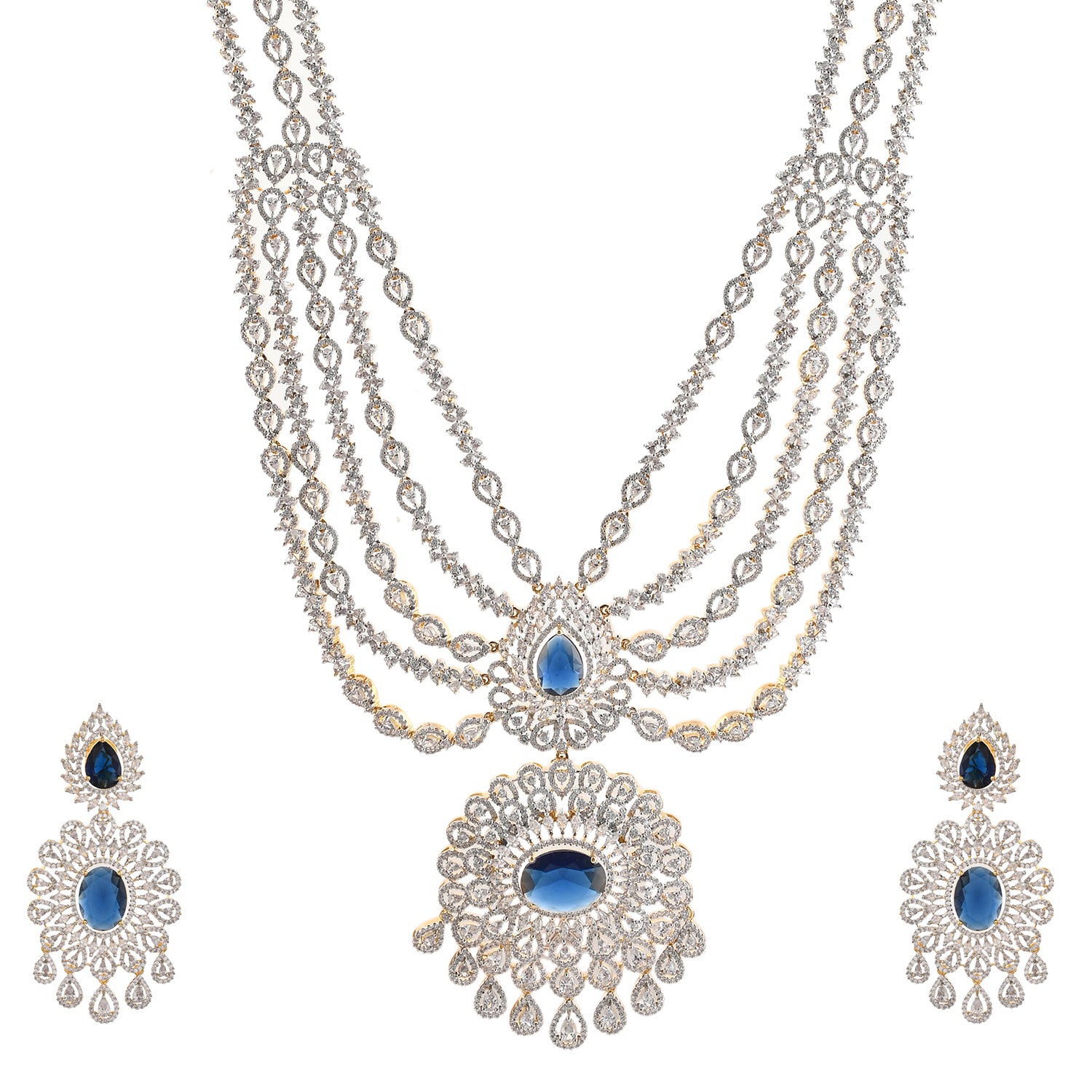 Sparkling Opulance Glorious Blue American Diamond Necklace Set