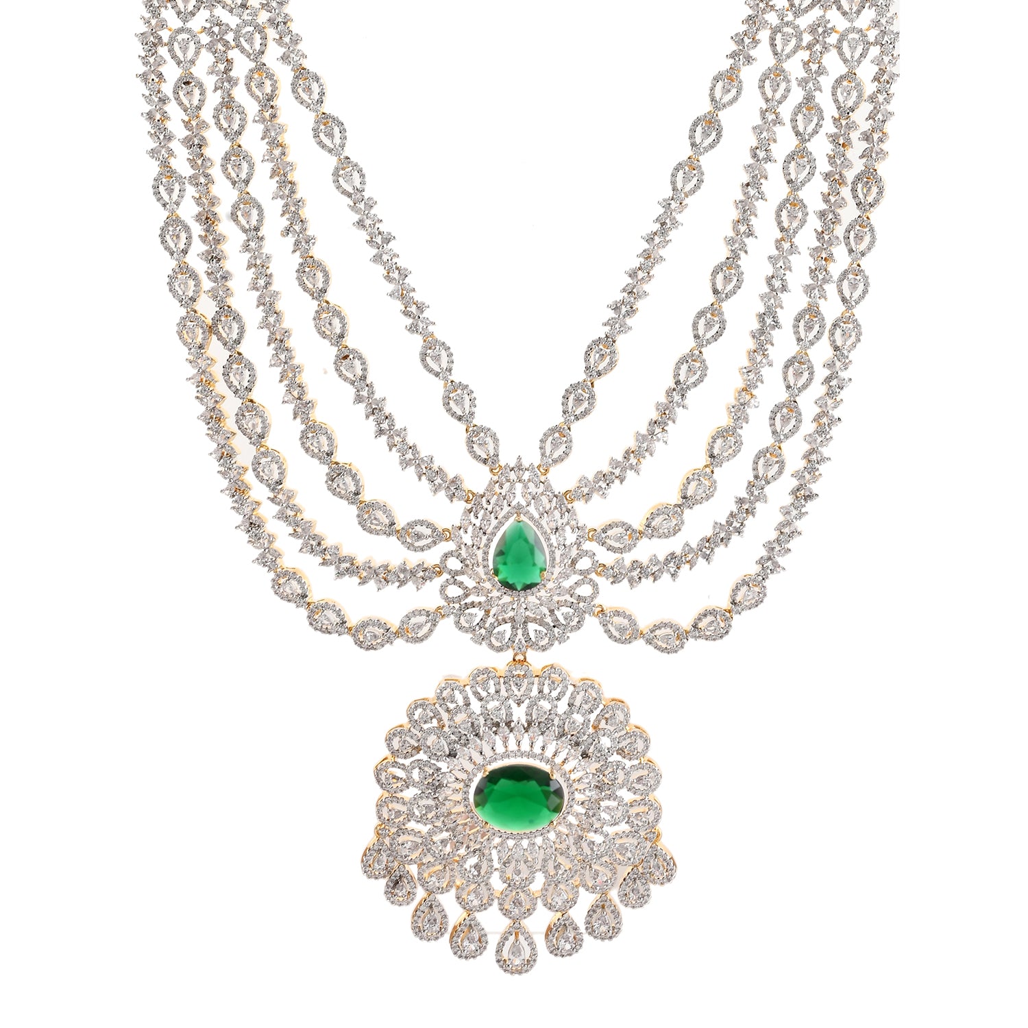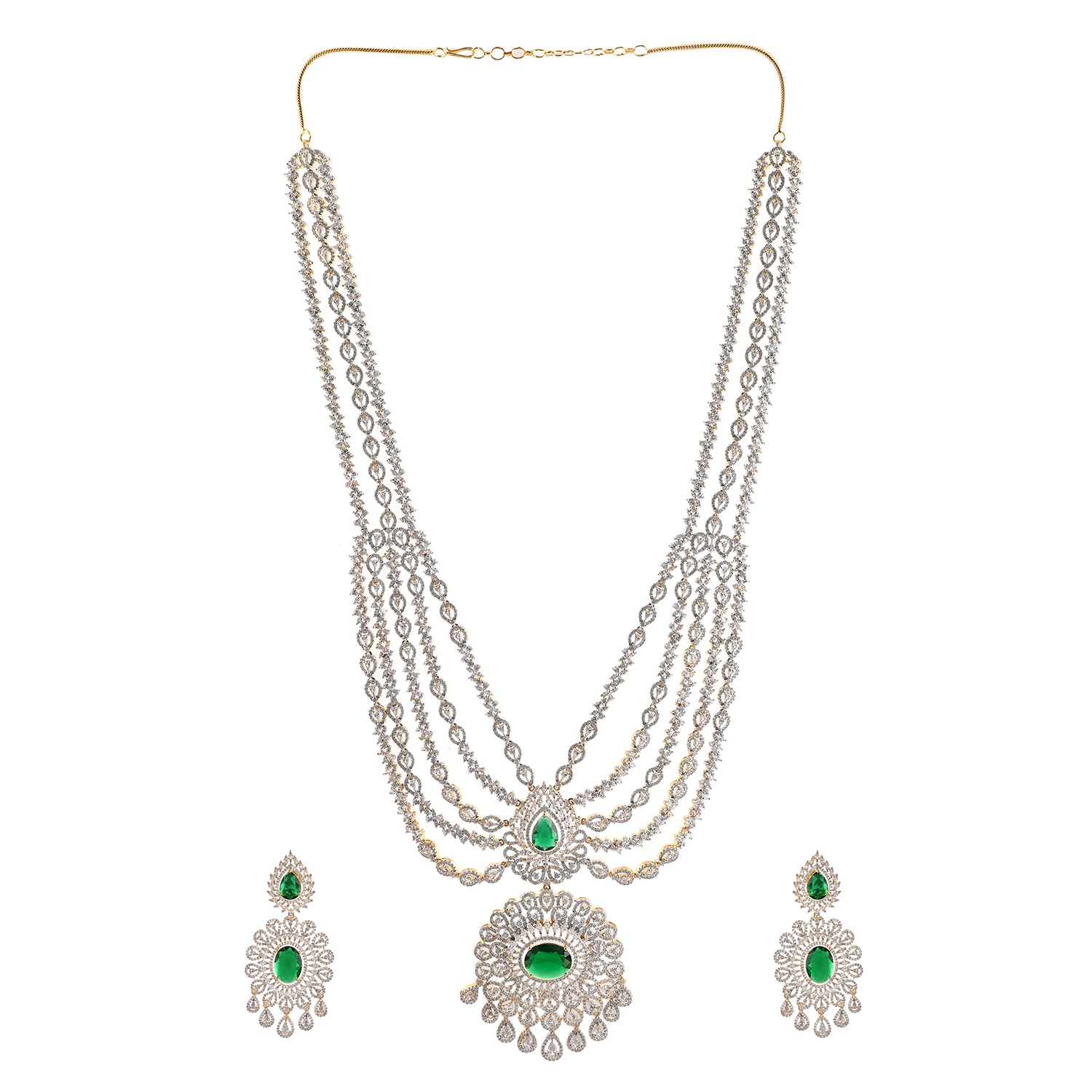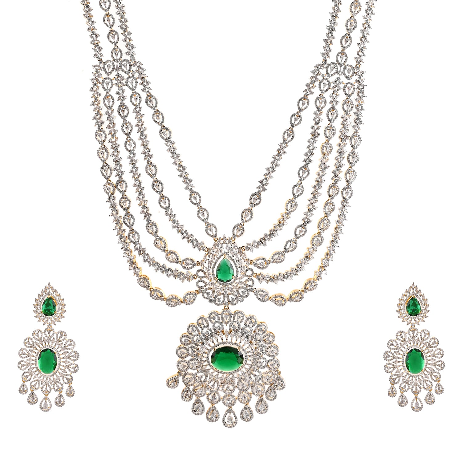 Sparkling Opulance Glorious Green American Diamond Necklace Set