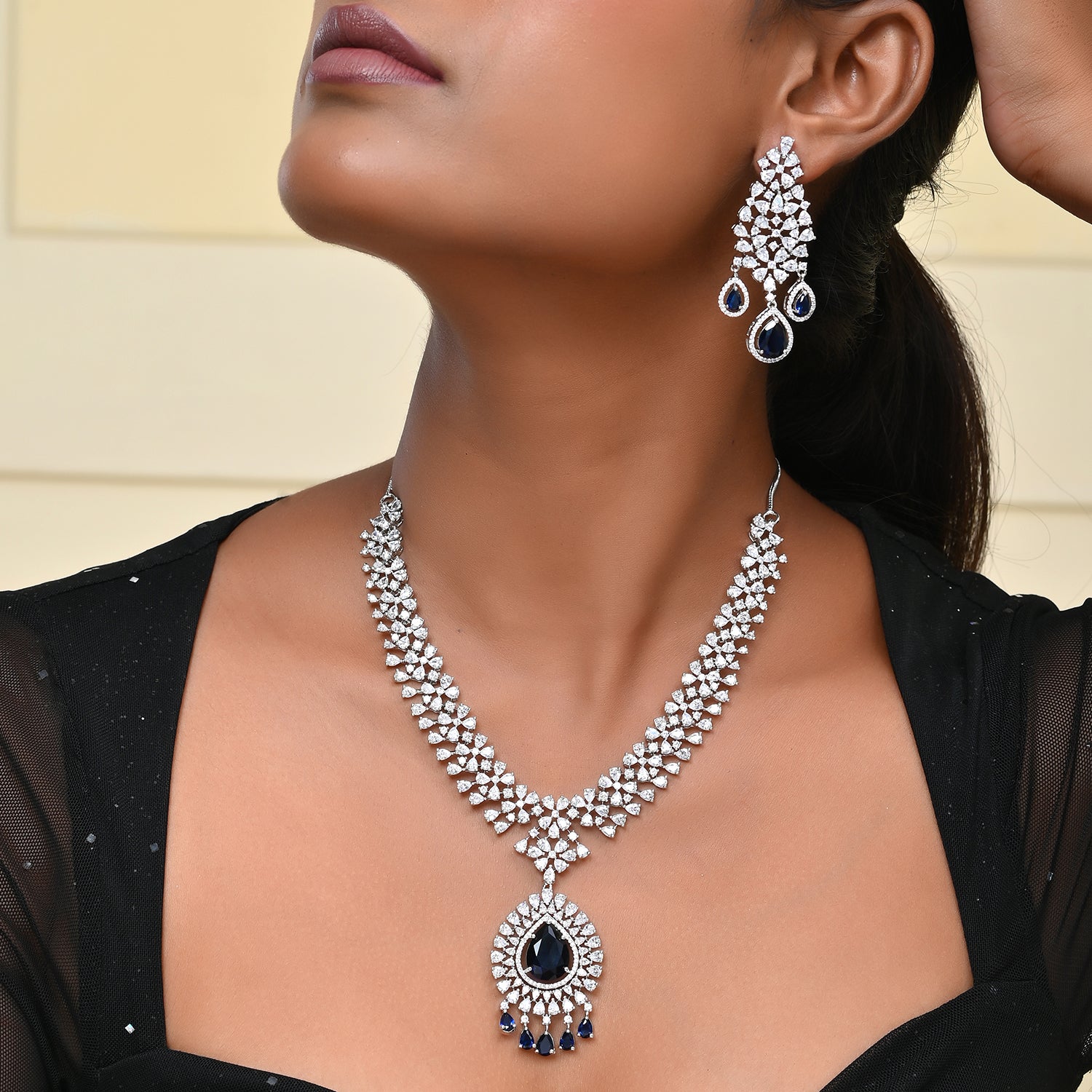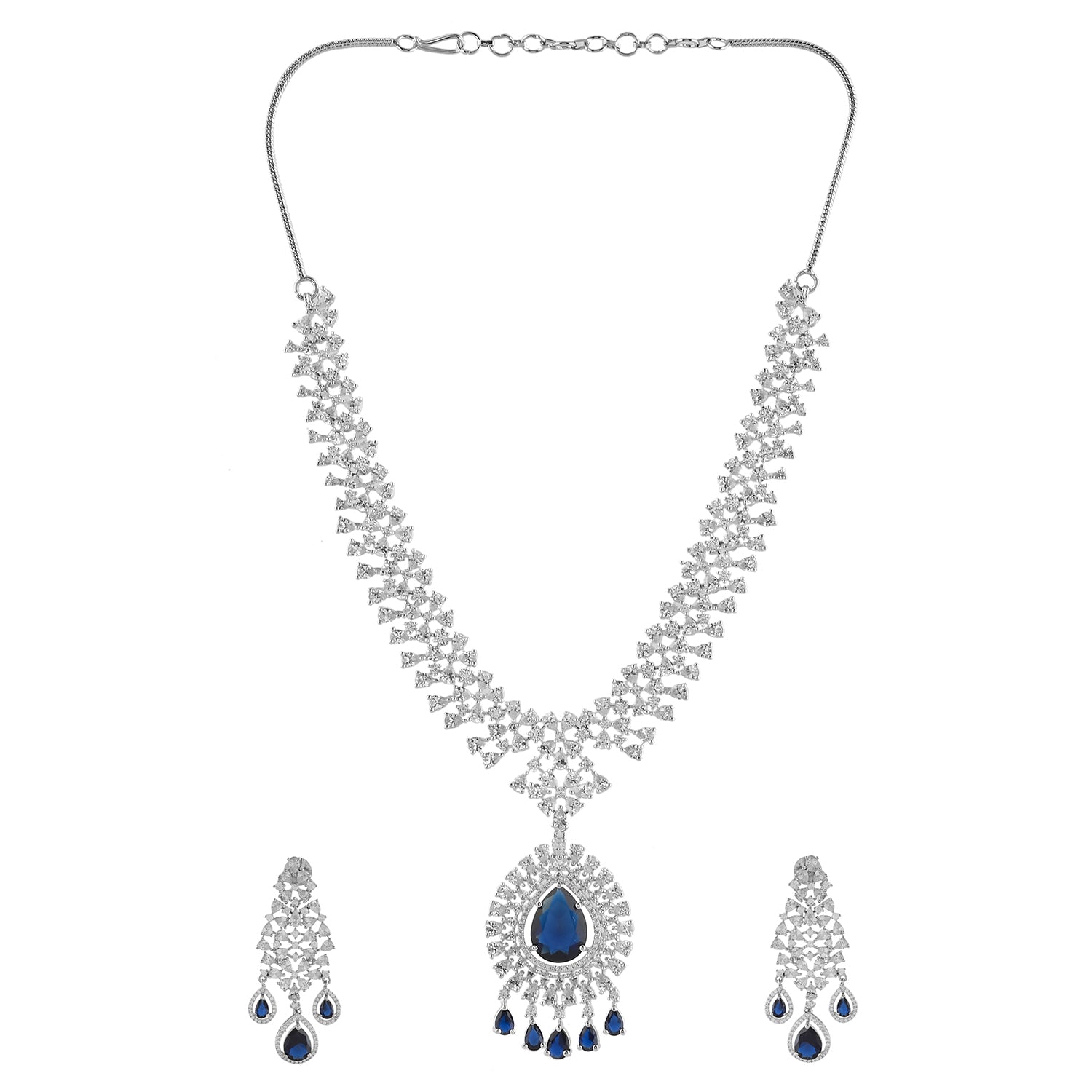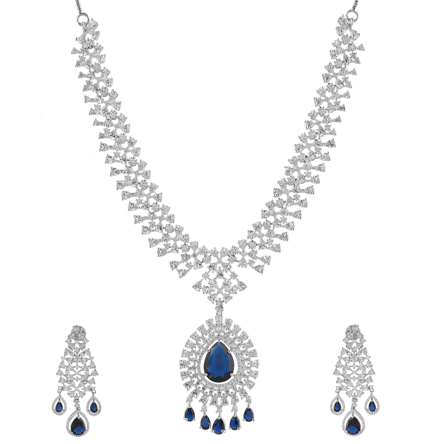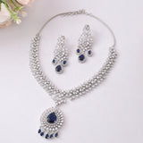 Sparkling Opulance Regal Blue American Diamond Necklace Set