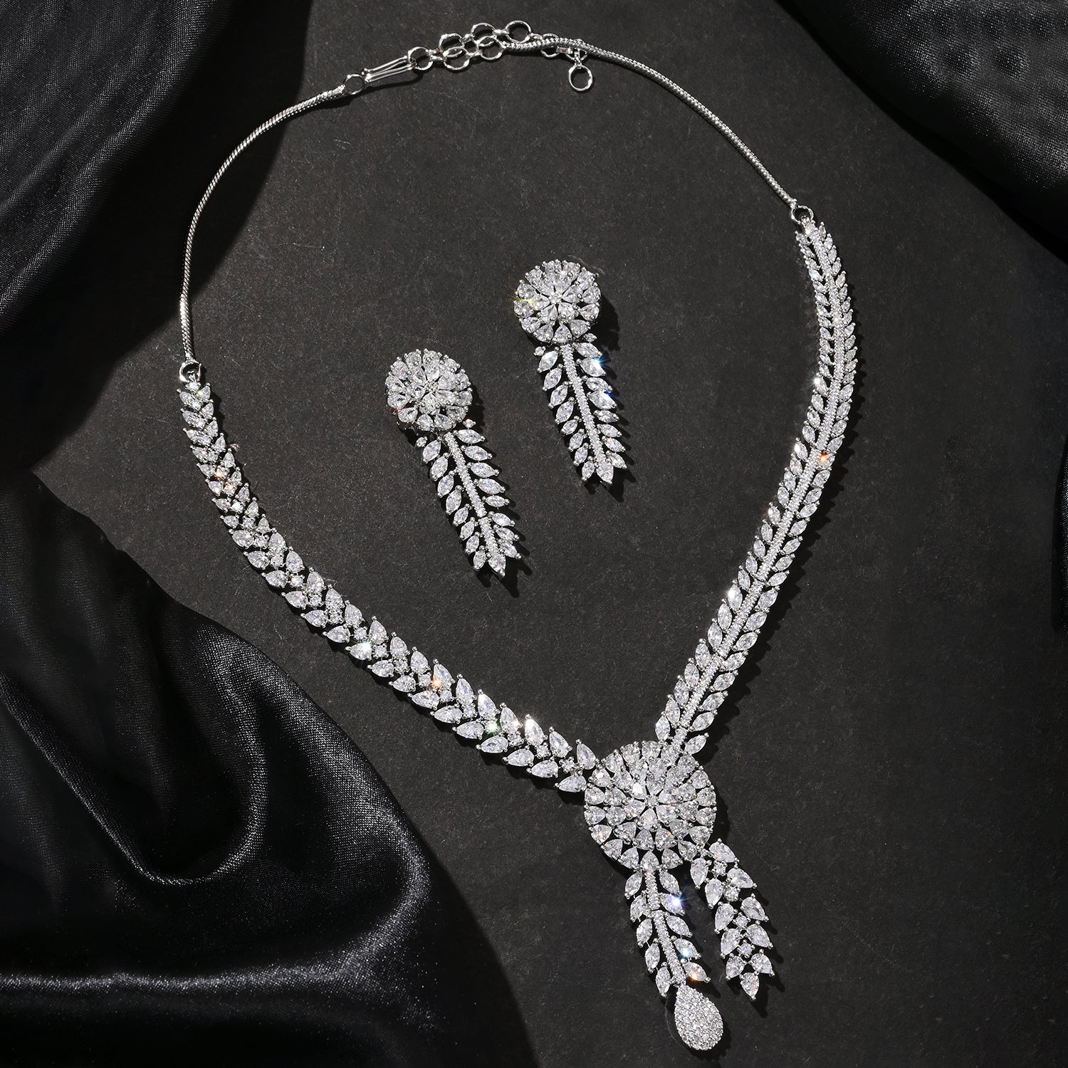 Sparkling Opulance Stunning Marquise American Diamond Necklace Set