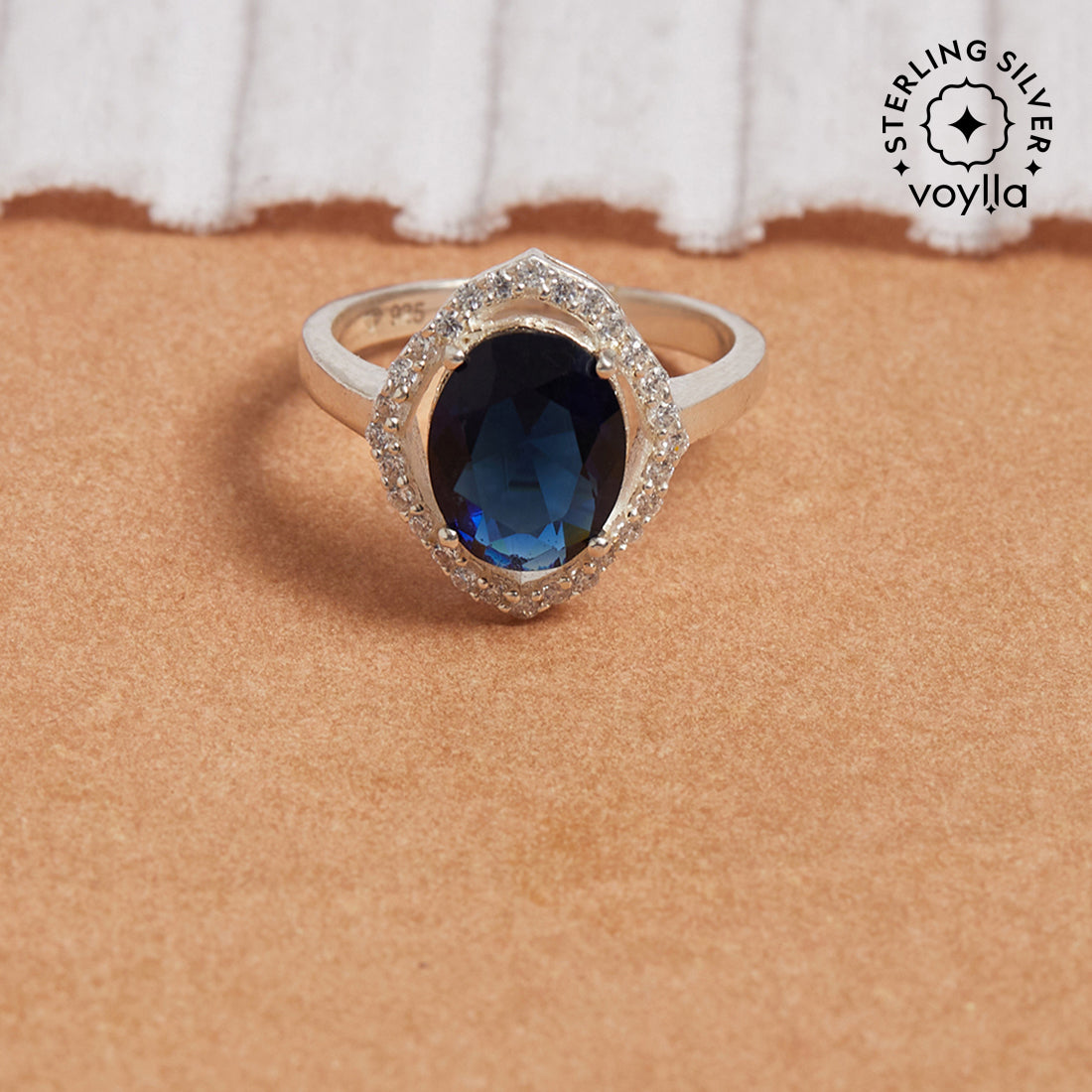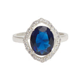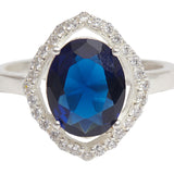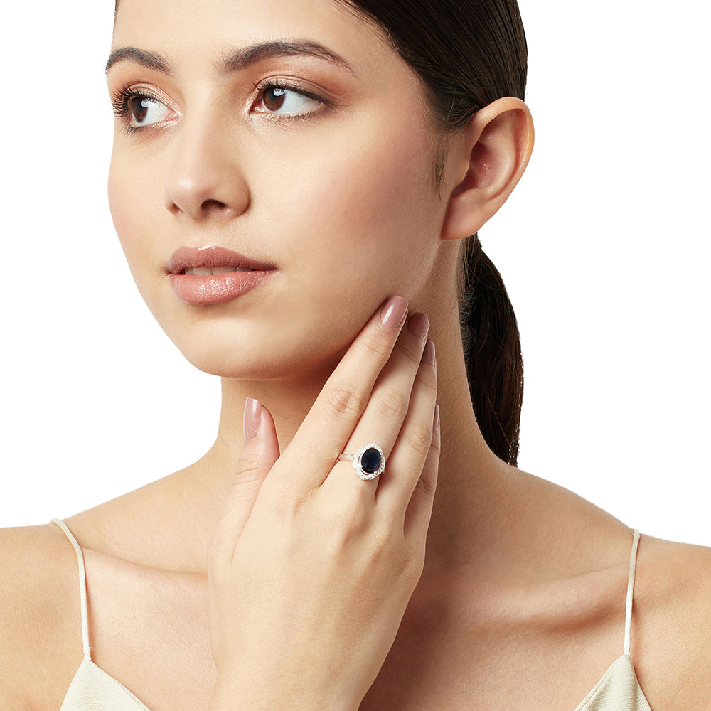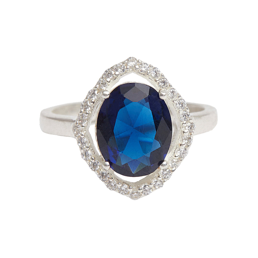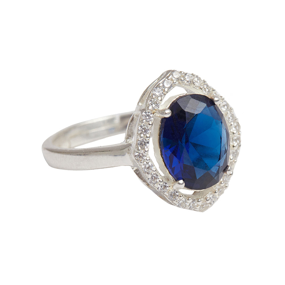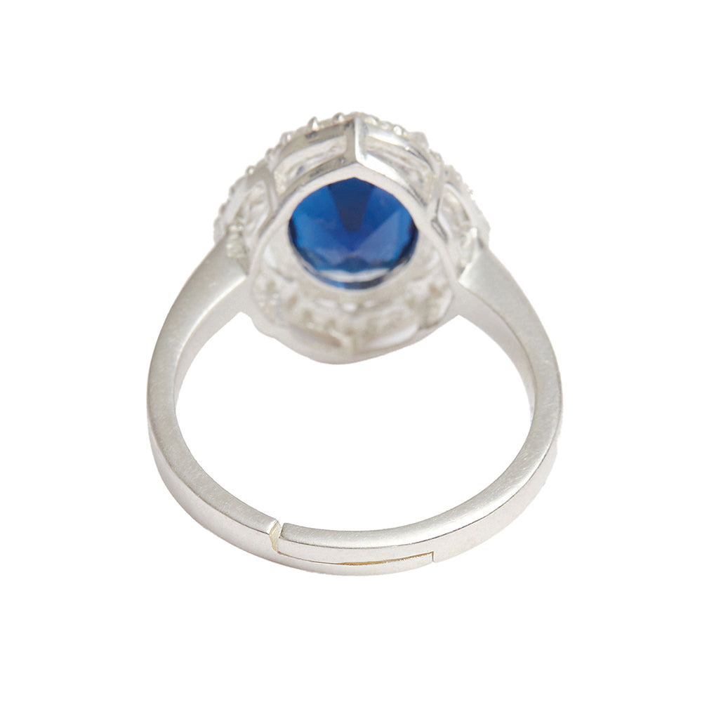 Sparkling Oval Blue CZ Studded Adjustable 925 Sterling Silver Adjustable Ring