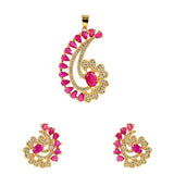 CZ Rose Gold Plated Necklace Set with Green Stones