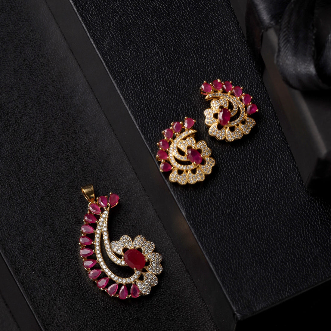 This pendant set is an essential jewelry box staple! Perfect for a traditional event or even a formal event. Its colorful and radiate joy even on the most monotonous of days. Grab these now before they are gone.
