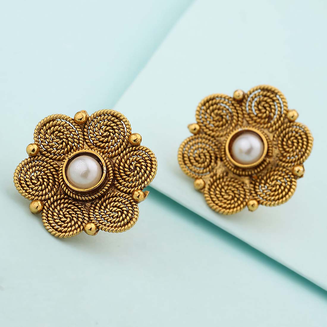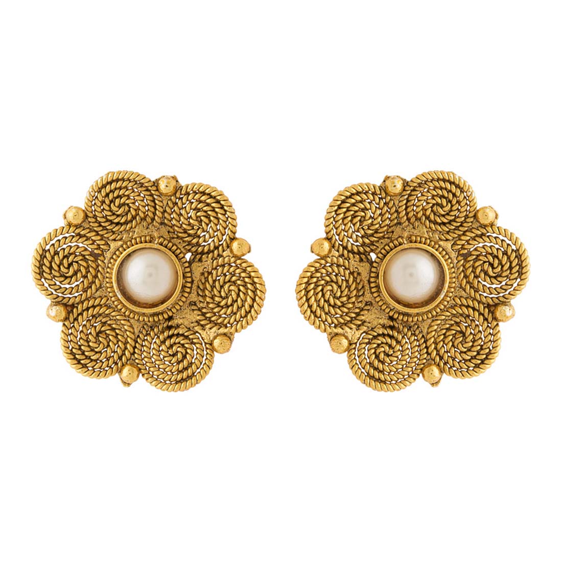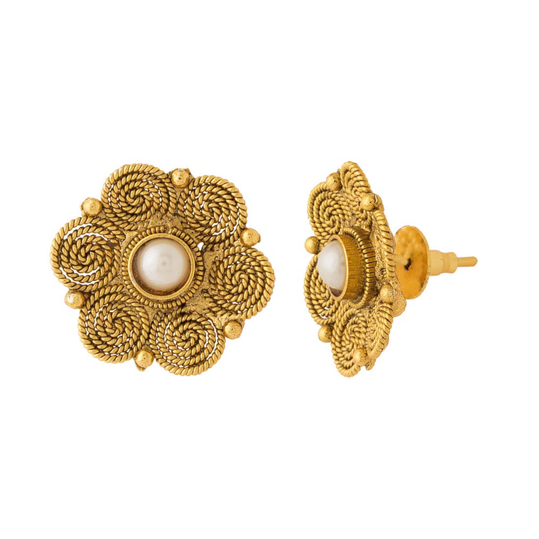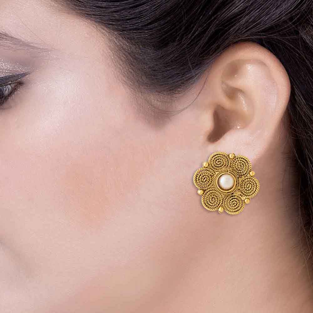 This festive season buy these extravagant earrings set from Voylla. Featuring spiral design along with pearl bead . Best suit with your favorite ethnic garments. This piece of jewelry comes with the Voylla assurance of quality and durability.