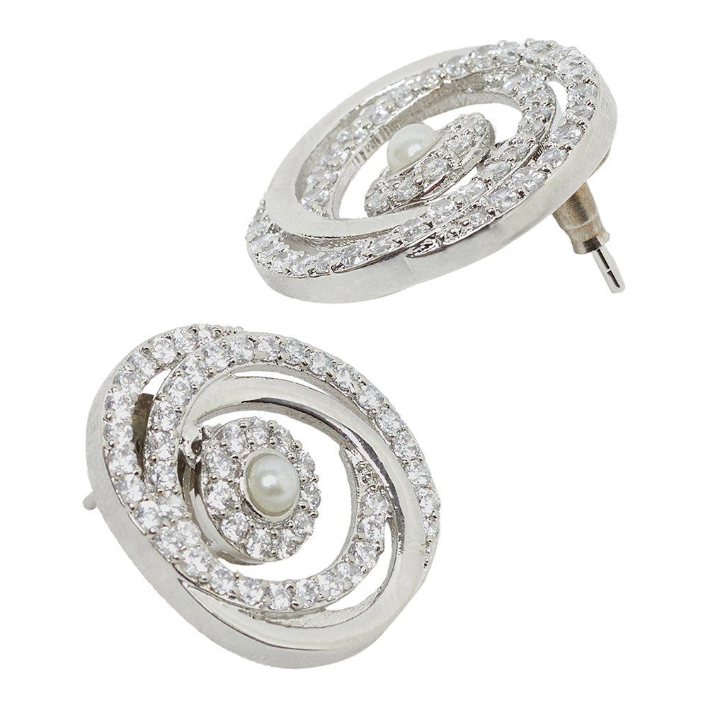 Sqaure Cut CZ and Faux Pearls Brass Silver Plated Earrings