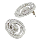 Silver plated brass earrings, fashioned into an edgy design. Embellished with sqaure cut zircon gemstones and faux pearls. Versatile enough to be paired with just about everything from casual to formal looks, and even work wear.