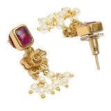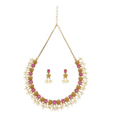 Square Cut CZ and Faux Pearls Adorned Brass Gold Plated Jewellery Set