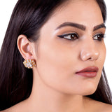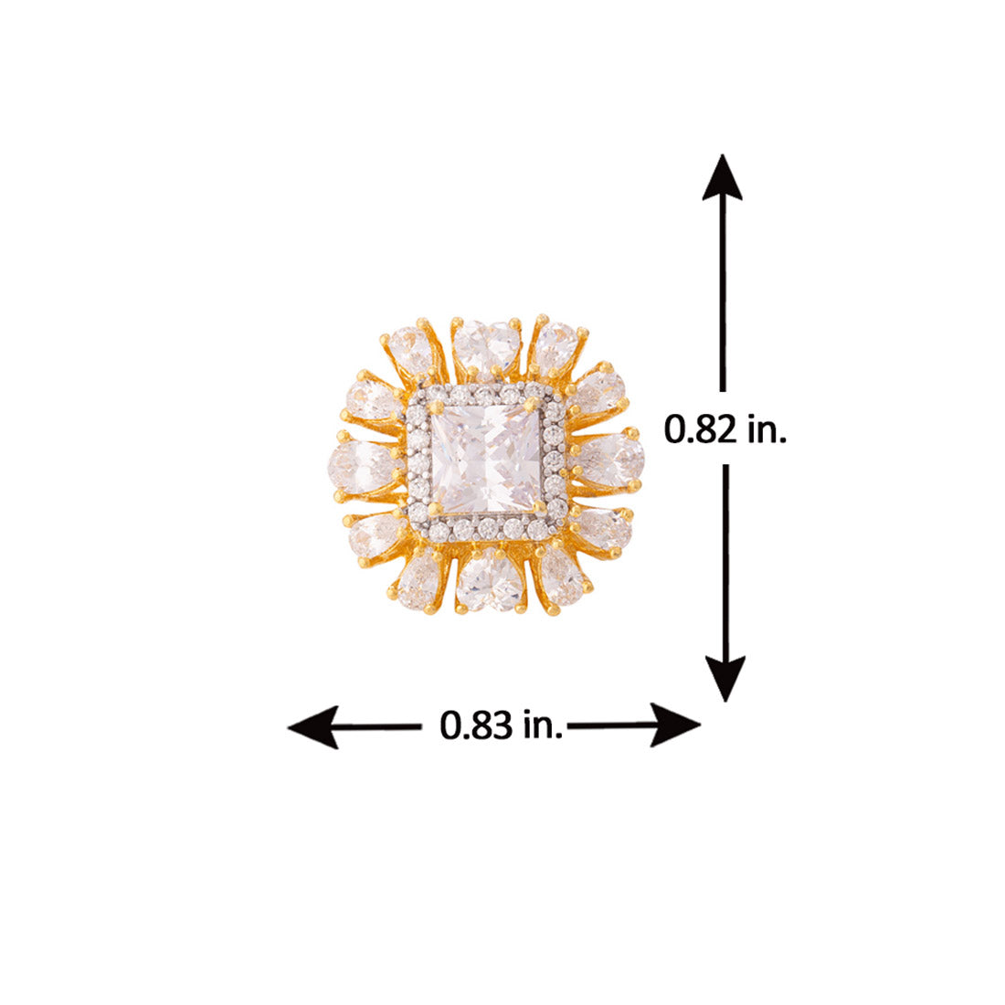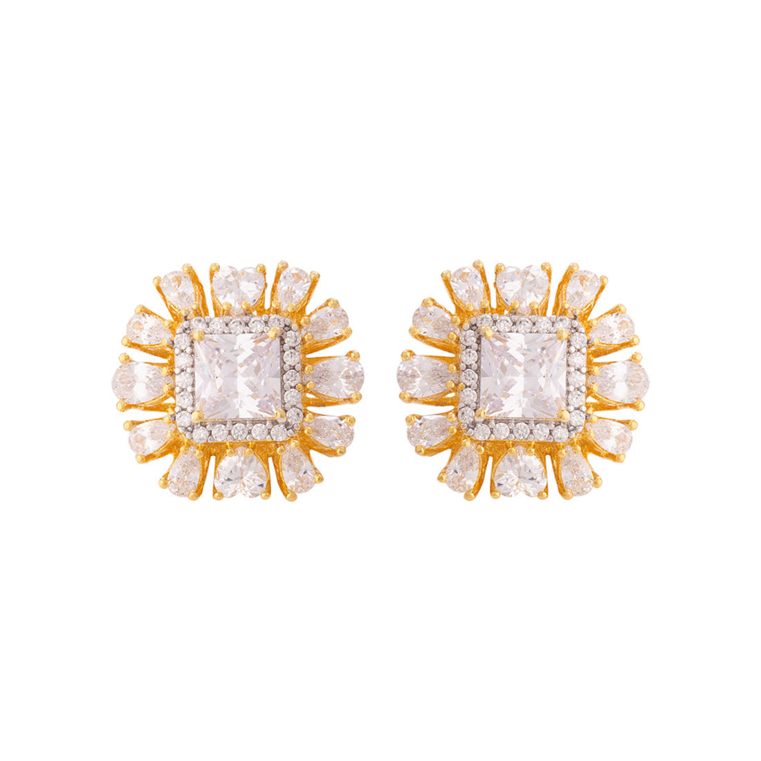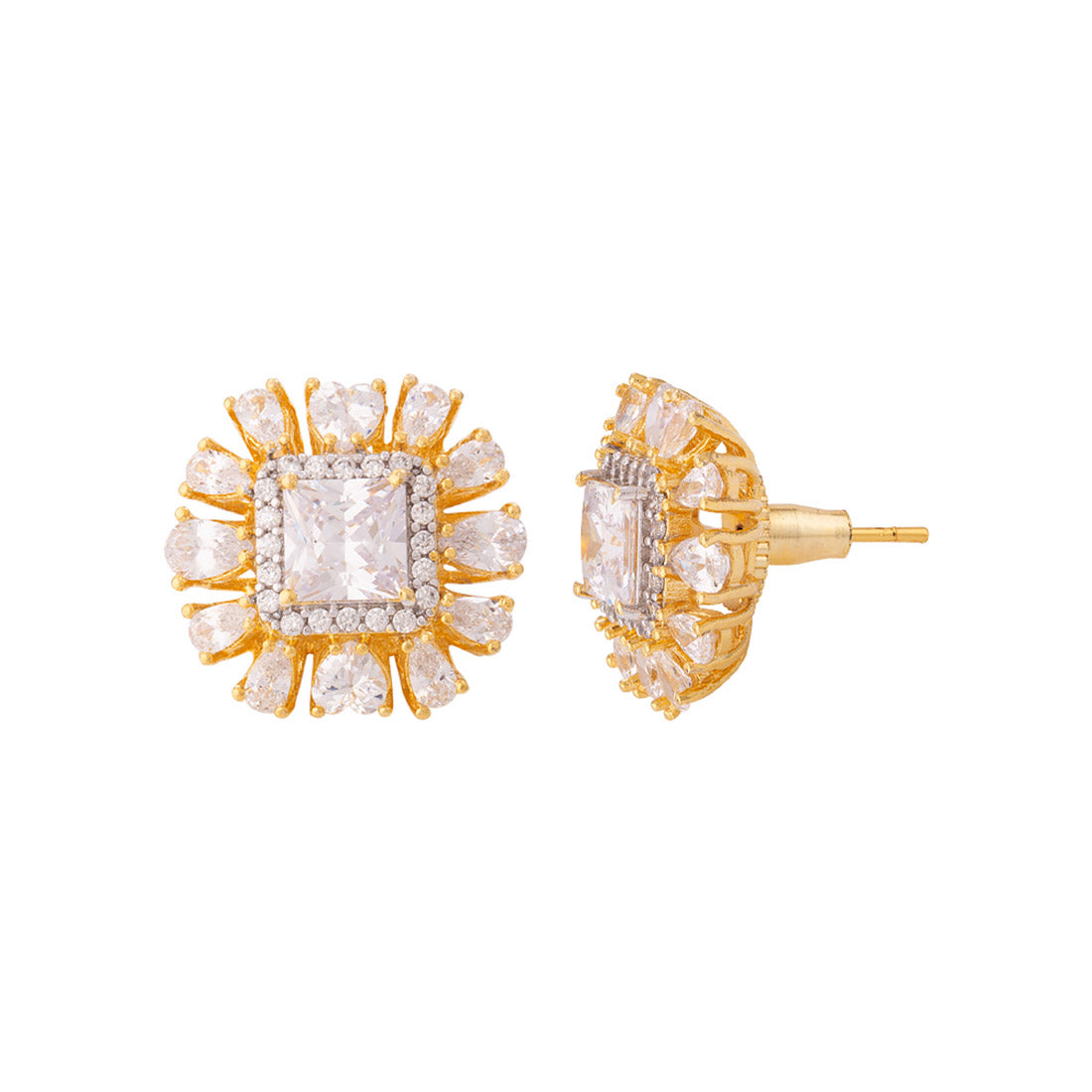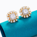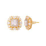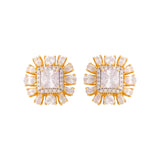 Stud style earrings made from brass. Embellished with square cut American Diamond gems and silver plated. Pair with a summer dress.