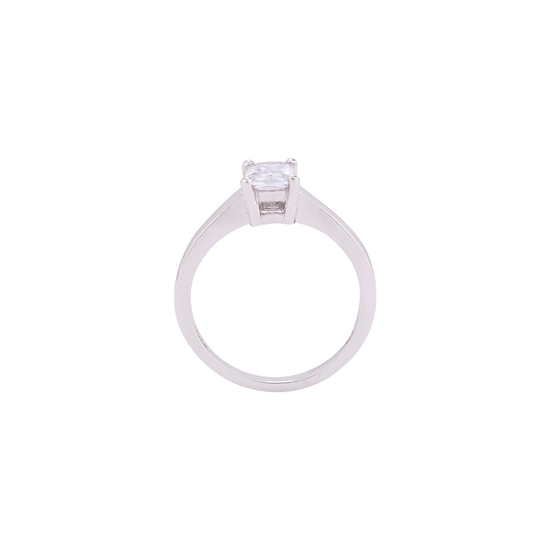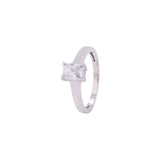 Women's brass ring embellished with a square cut zircon gemstone. Silver plated and good for everyday wear.