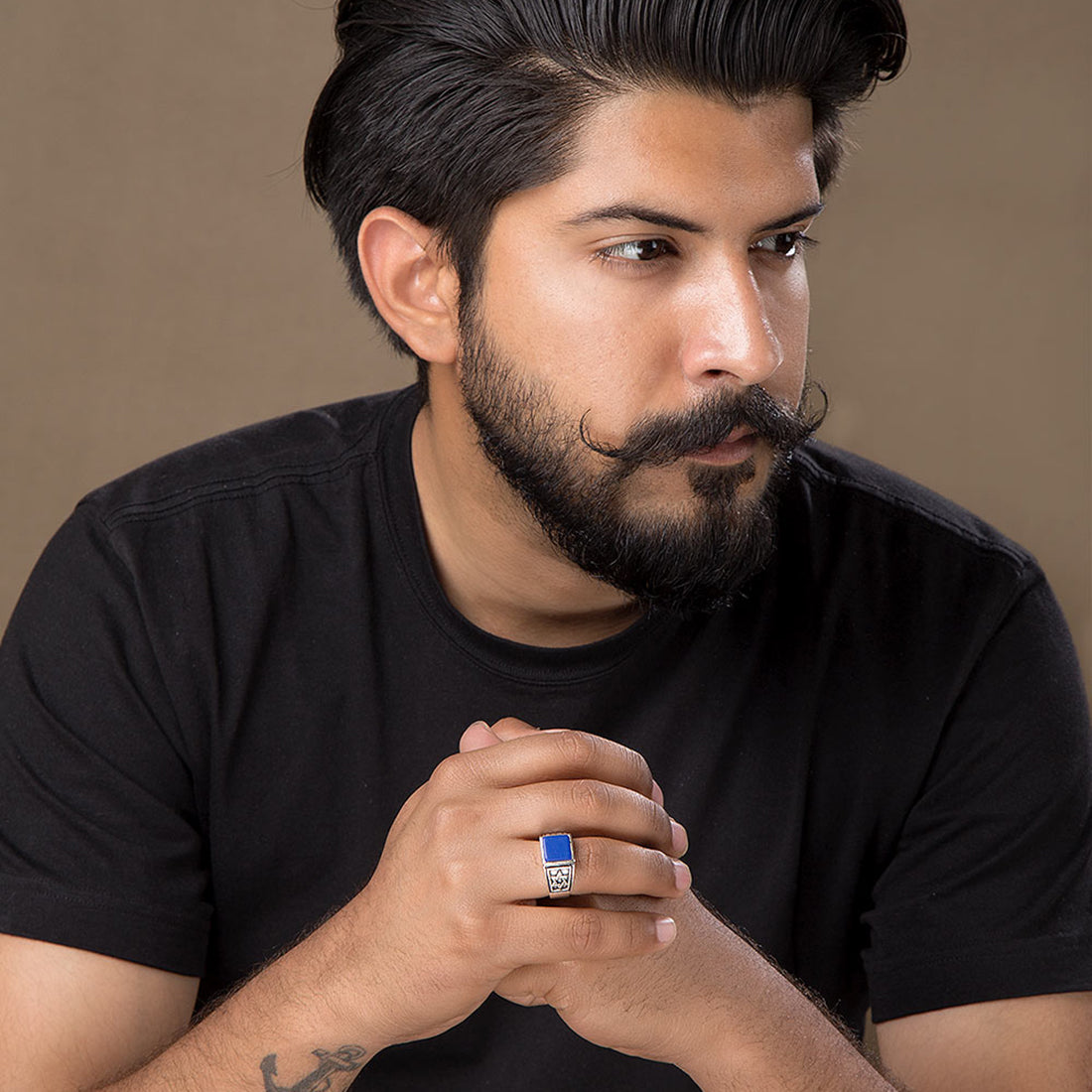 The Accessory: This ring from the Milestone collection has a blue square stone in the centre and a star motif on its shoulders. How to Wear It: Can be worn both with casual and formal outfits. Own the Part: An ideal AM to PM accessory. To make your accessories last longer avoid harsh chemicals and moisture. Keep dry, clean with dry cloth and wear with panache. "From the Dare by Voylla, India’s largest fashion jewelry brand comes DARE, a line of handcrafted accessories for the modern Indian. man. "