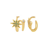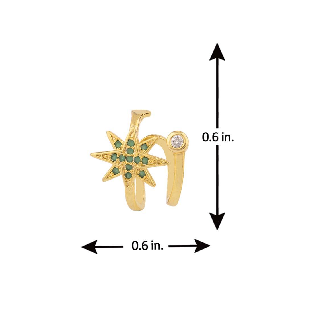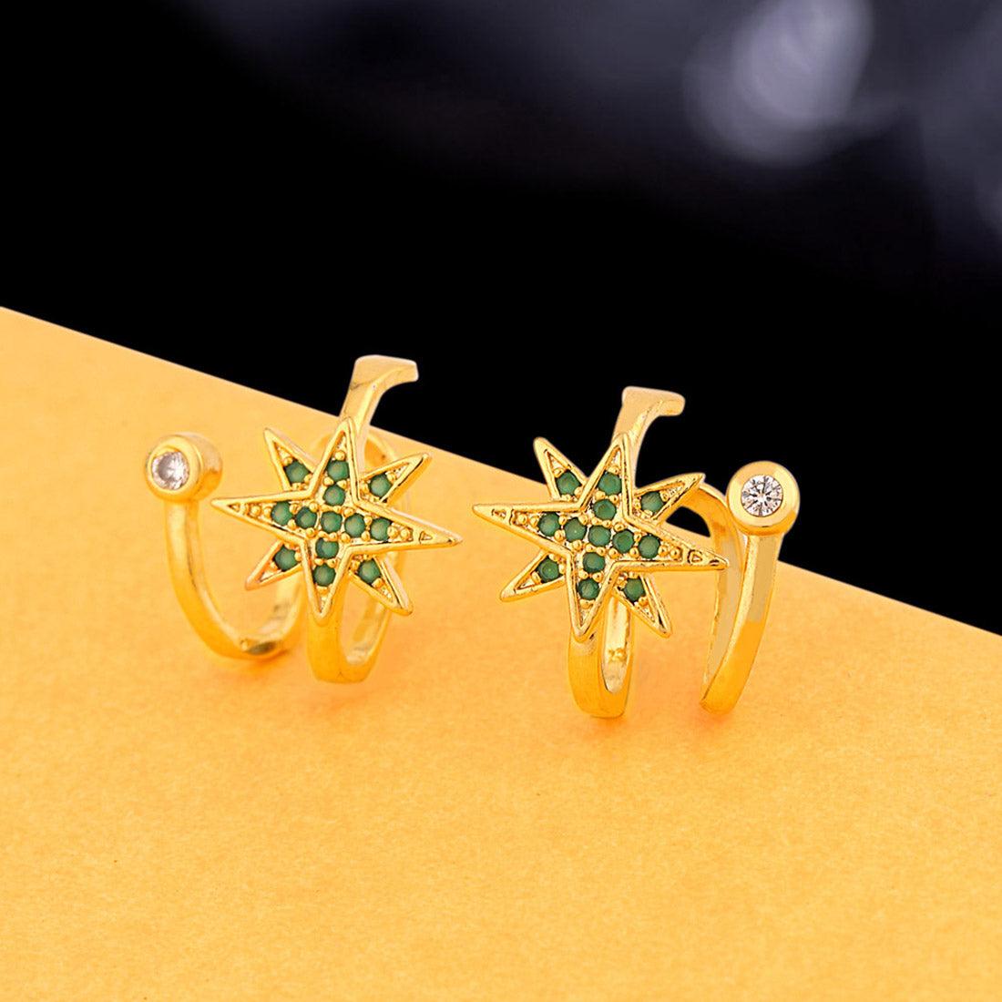 Twist style earrings with a star motif. American Diamond gems embellished and made from brass. Wear the yellow gold plated pair with casual attire.