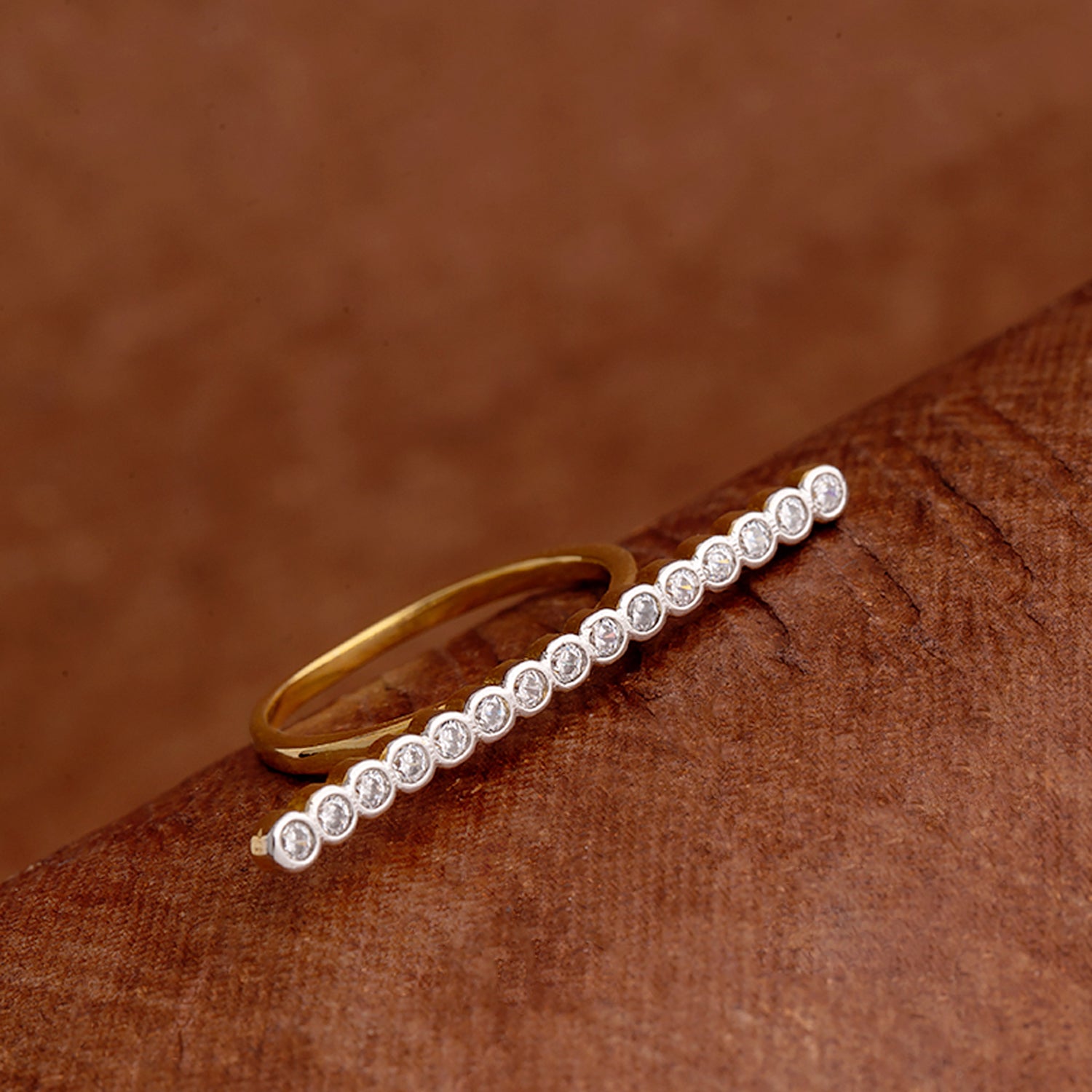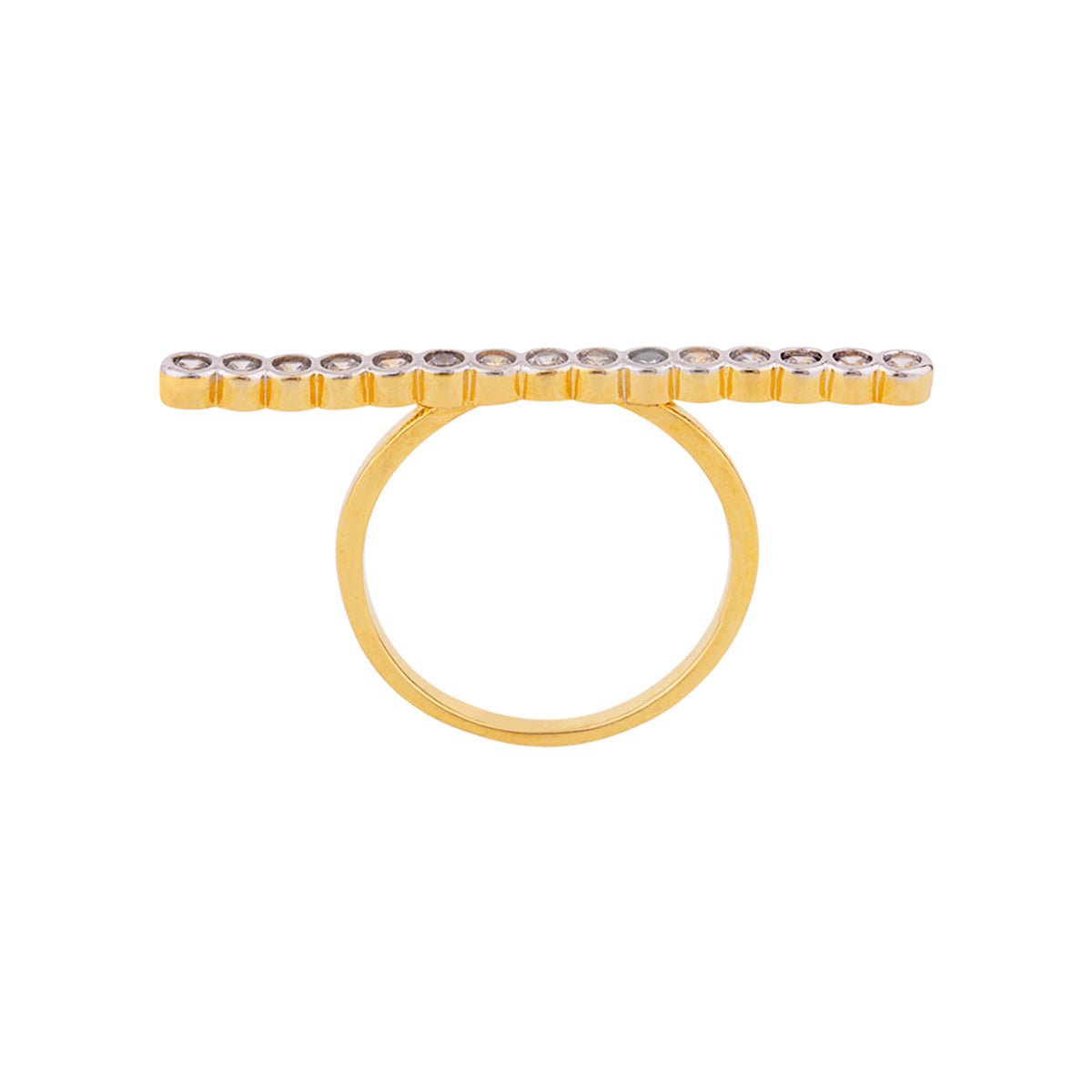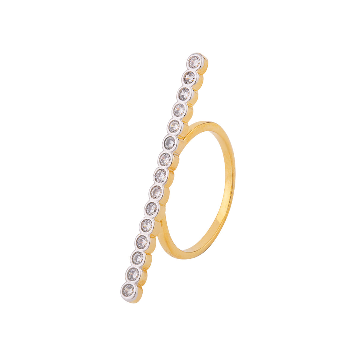 Statement ring with CZ gems. Made from brass and two tone plated. Pair with a cocktail gown. This piece of jewelry comes with the Voylla assurance of quality and durability.