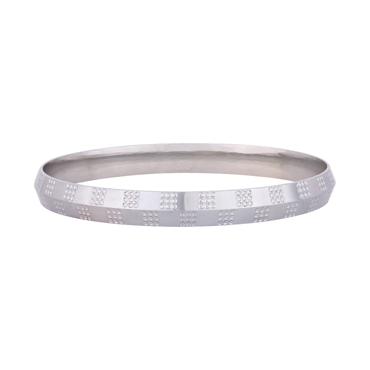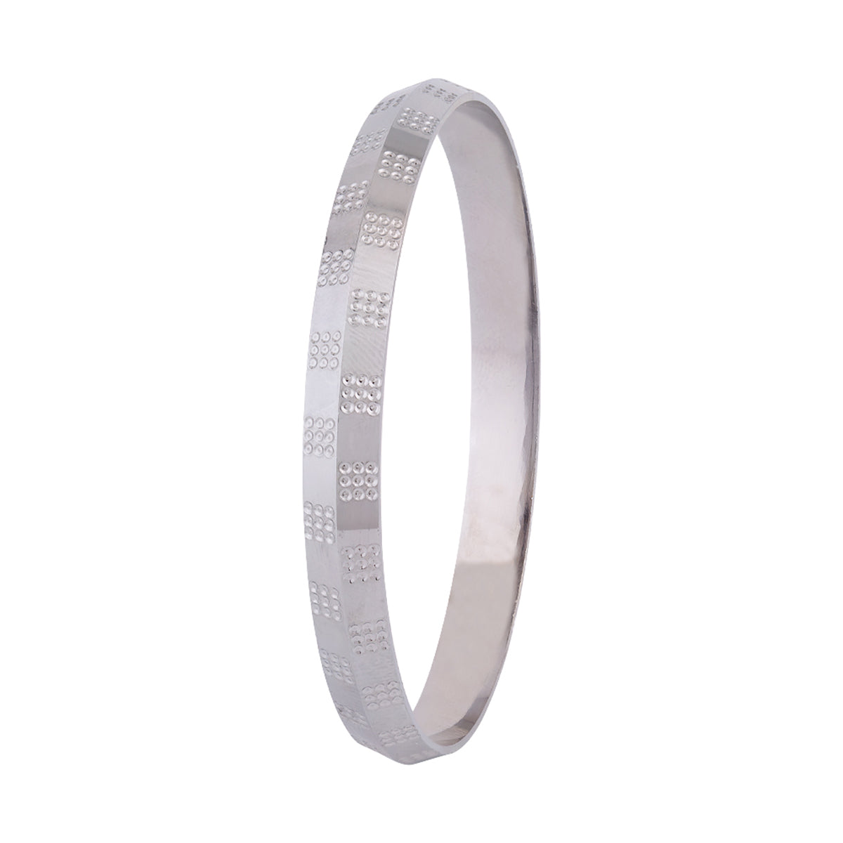 Textured surface kada for men. Made from stainless steel and silver plated. Wear with everyday attire. To make your accessories last longer avoid harsh chemicals and moisture. Keep dry, clean with dry cloth and wear with panache. "India?s largest fashion jewelry brand DARE, comes from the House of Voylla as a limited edition of handcrafted accessories for the modern Indian men. "