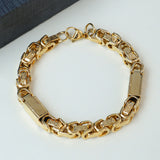 Classic yellow gold plated link design bracelet for men. Fashioned out of stainless steel, comfortable and versatile. This piece of jewelry comes with the Voylla assurance of quality and durability. Caring for your fashion jewelry: We, at Voylla, take care of every piece of jewelry so that you don't spend hours caring for them.