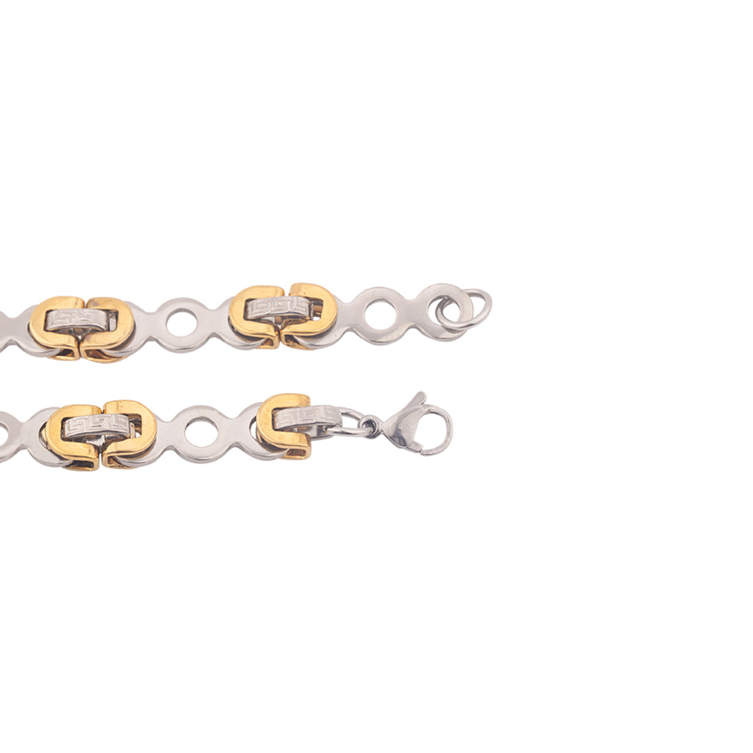 Knotted links bracelet for men with two tone plating. Fashioned out of stainless steel. Good for casual looks.