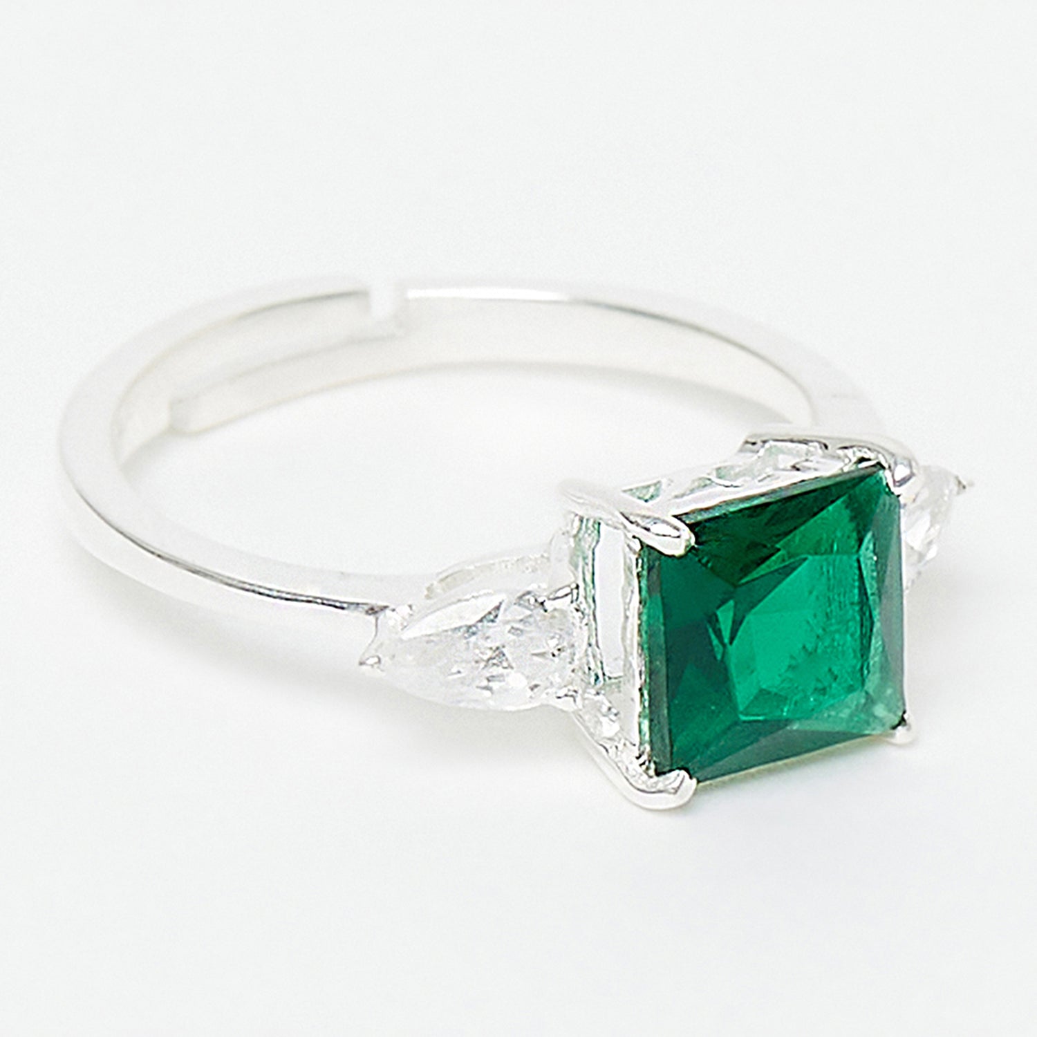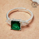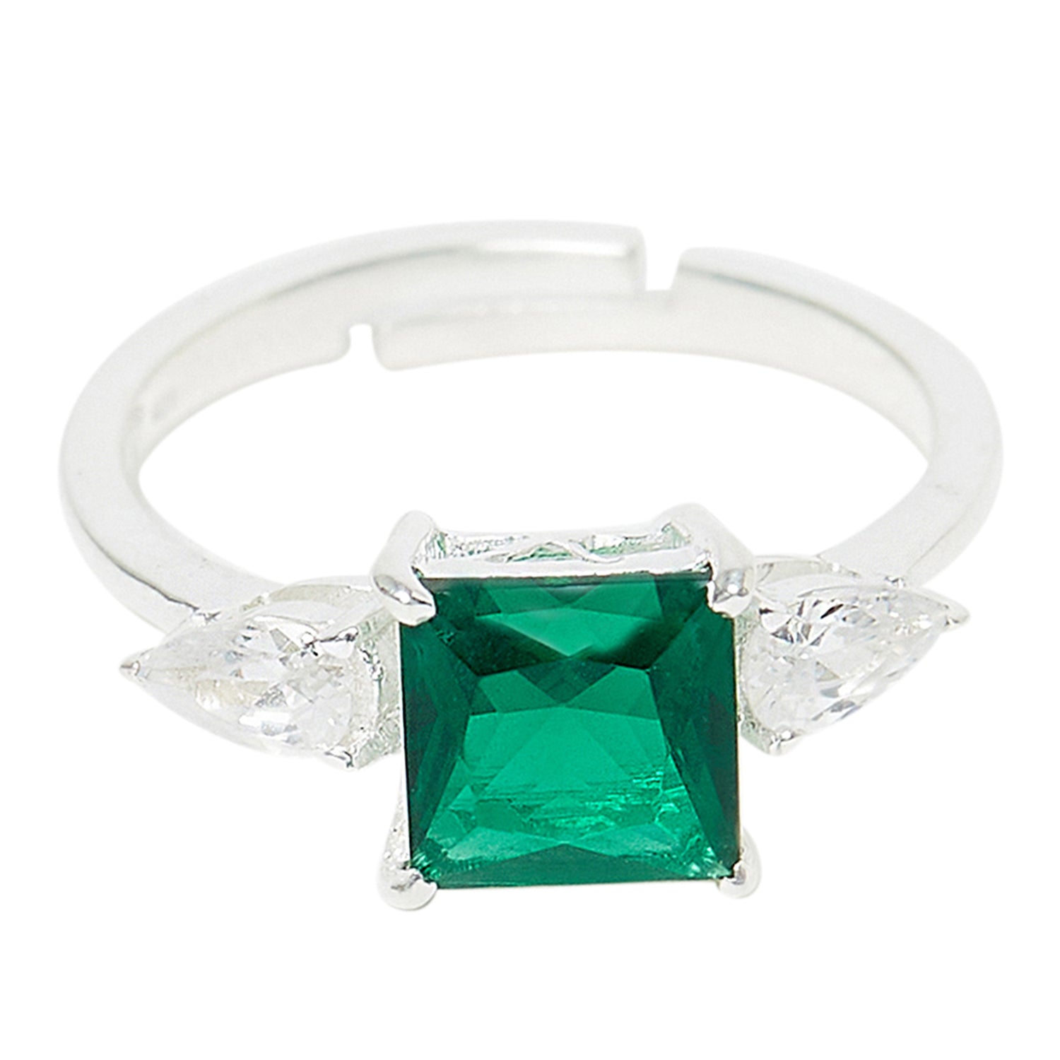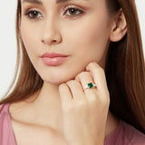 A pretty cocktail ring adorned with stunning green colored stones over motif; adding a whim of beauty. Team this adornment with casual dress or with party attire!
