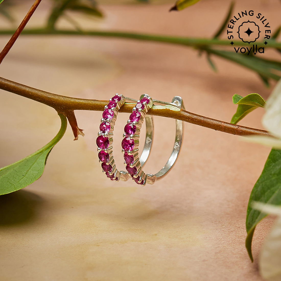 Accentuate your diva best with these stunning pair of earring pair studded with pink stones and CZ sparkles made of sterling silver. Pair them with any of casual dresses to get a perfect look.