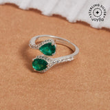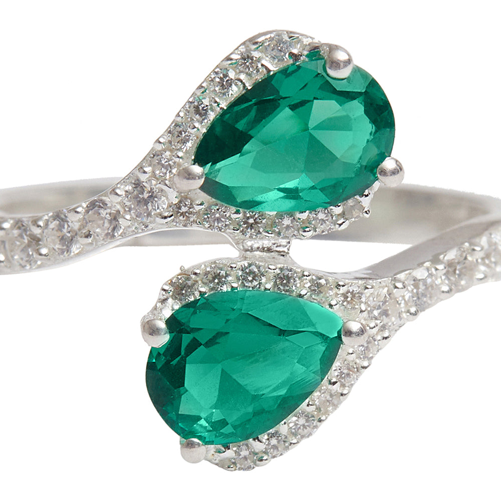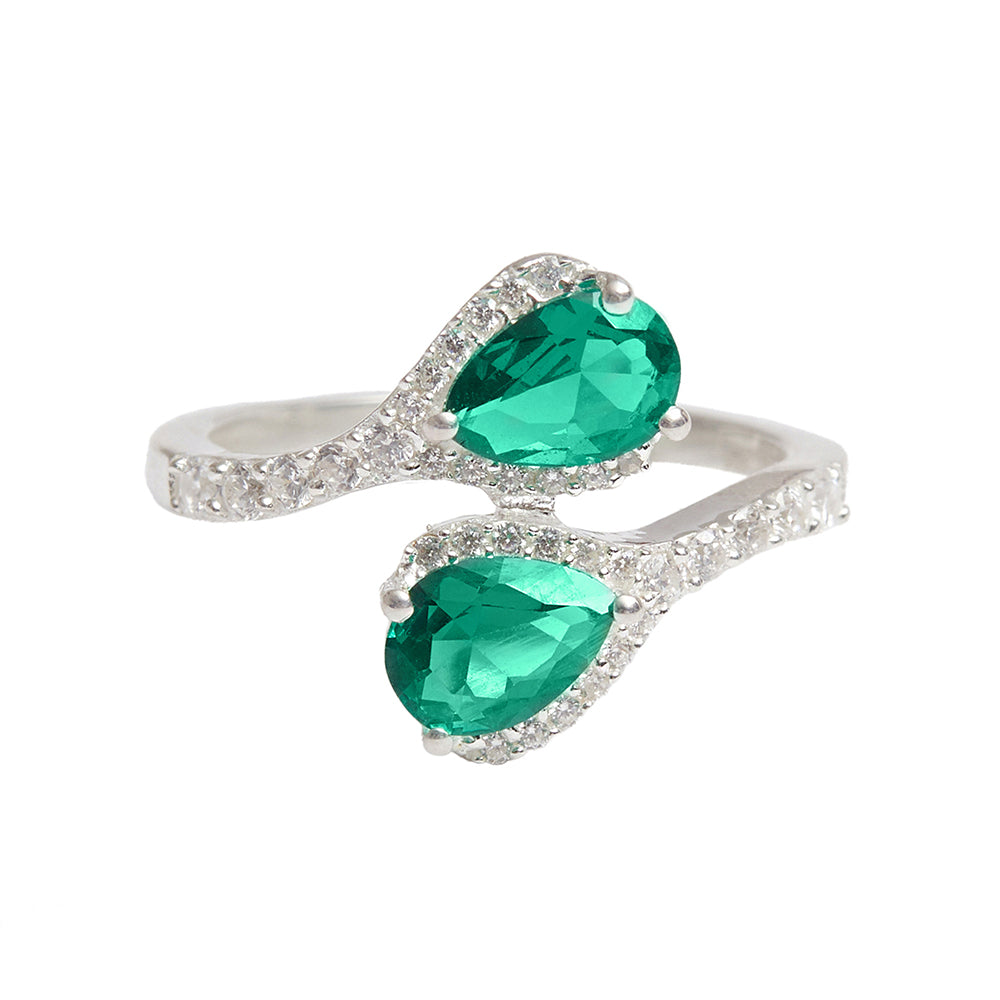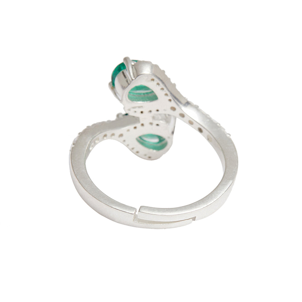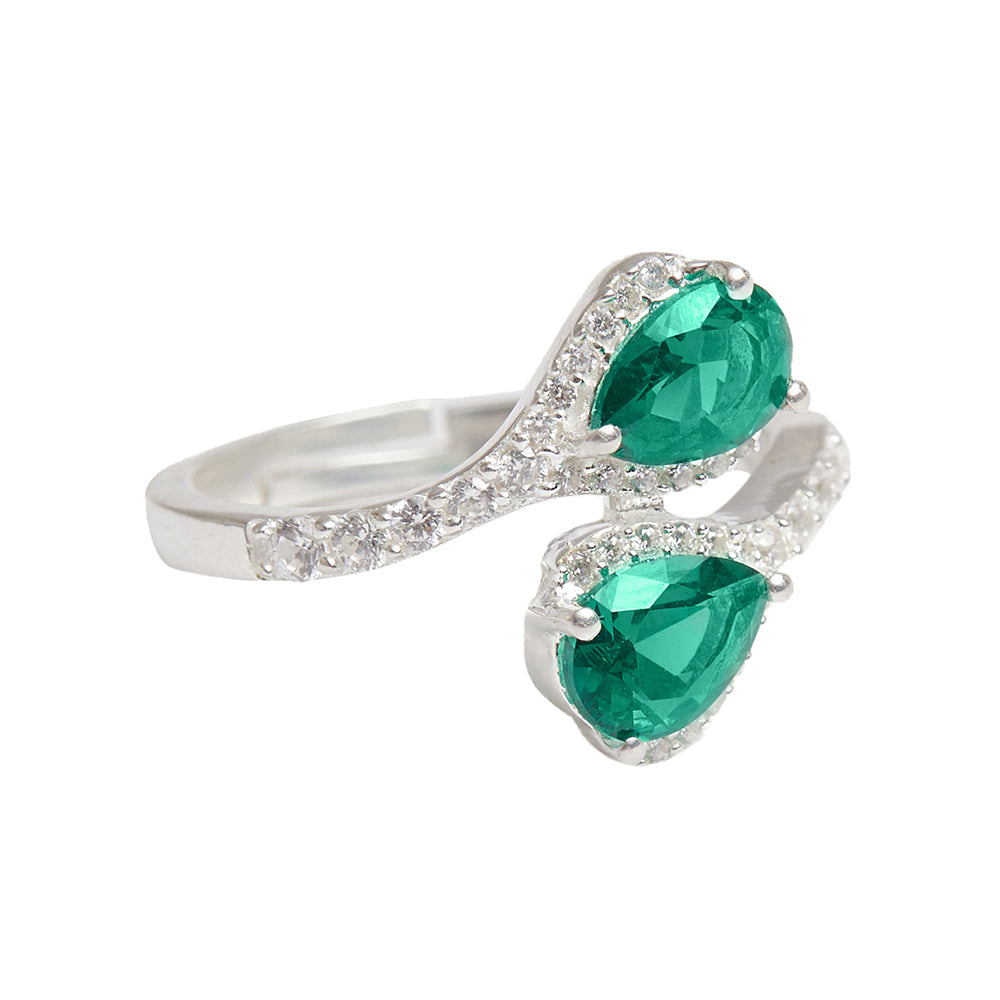 Sterling Silver Ladies Cubic Zirconia Emerald Green Adjustable Ring