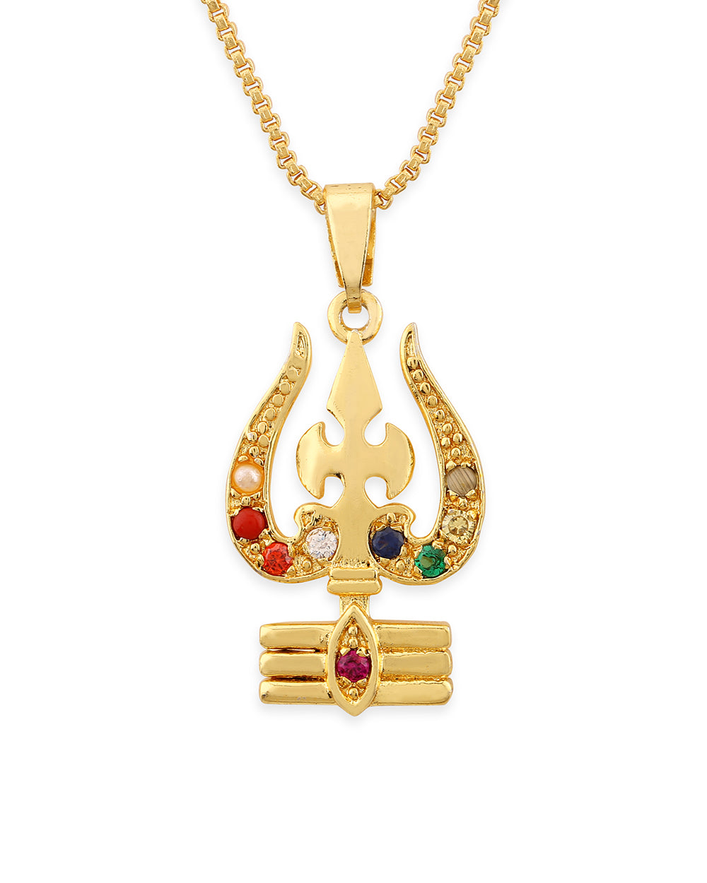 The Accessory: Divine pendant with chain featuring a Mahadev trident charm studded with colorful stones. How to Wear : Wear it with a kurta pajama. Own the Part: You would look distinctive wearing this bracelet at festive celebrations.