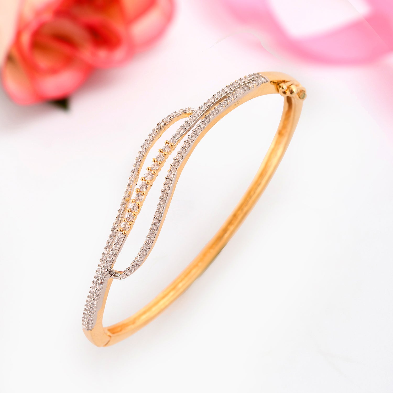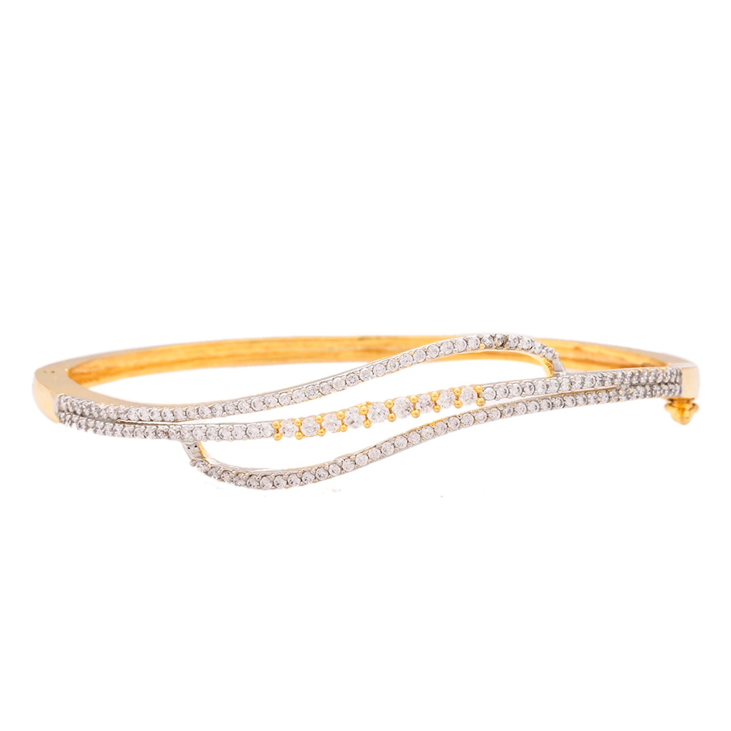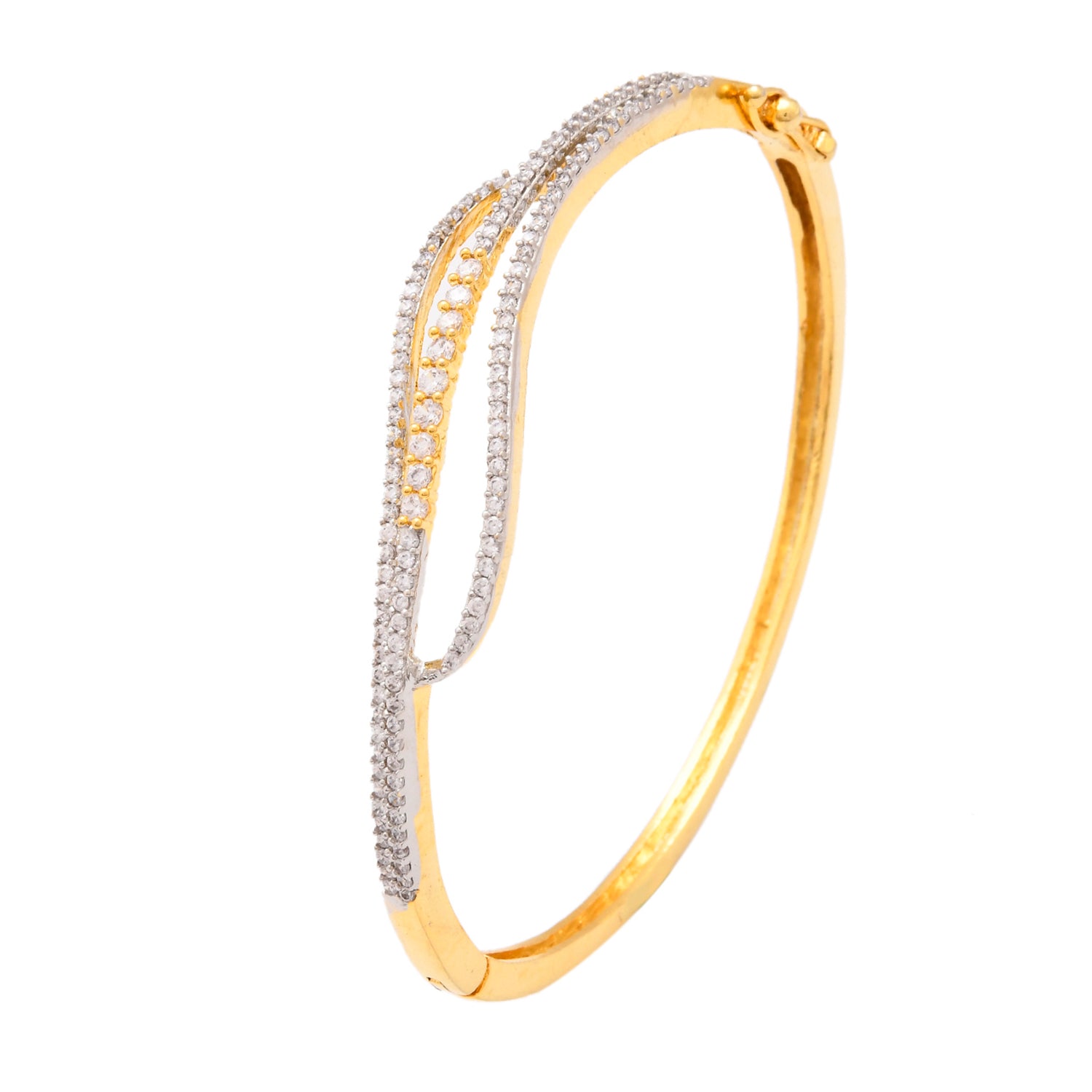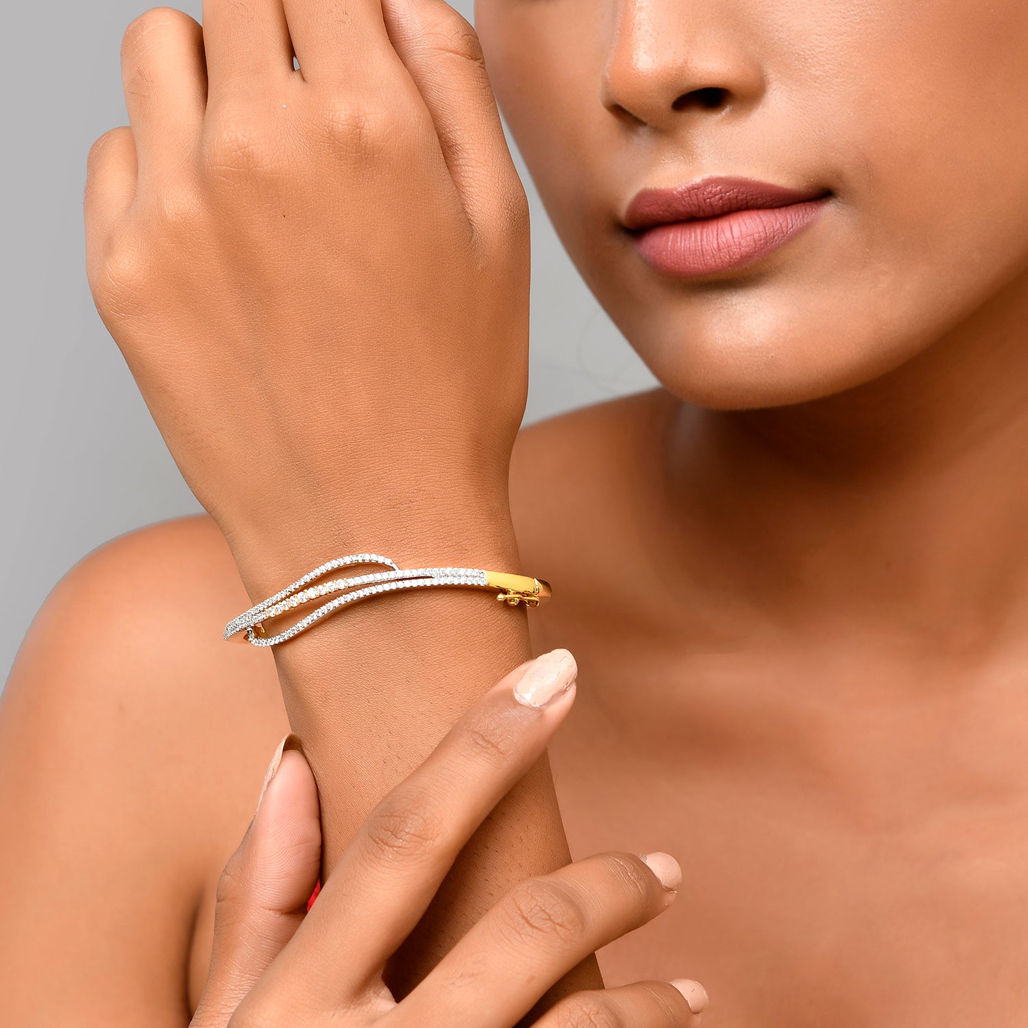 Celebrate the festive season with this exquisite Voylla American Diamond Bracelet, designed to add a touch of elegance to any occasion. Crafted from high-quality brass and adorned with sparkling cubic zirconia stones, this bracelet features a stunning gold plating that enhances its luxurious appeal. The intricate design showcases a delicate interplay of shimmering stones, making it a perfect accessory for Navratri, Diwali, Durga Puja, Rakhi, and other festive events. Whether you're looking for a gift for your wife, sister, girlfriend, mother, or friend, this bracelet is sure to impress. Embrace the festive spirit with this beautiful bracelet for women, a true testament to Voylla's craftsmanship and style.
