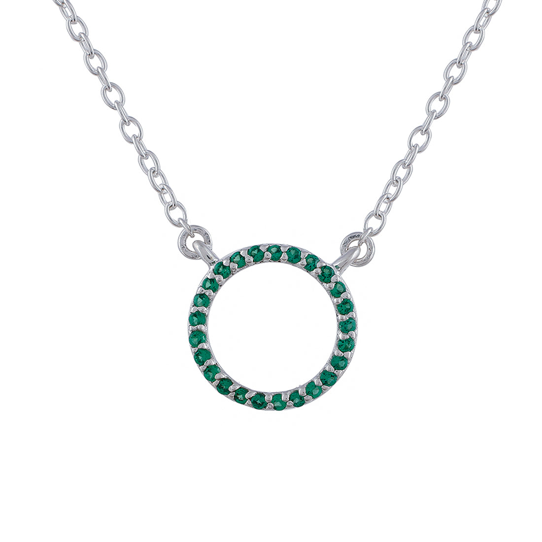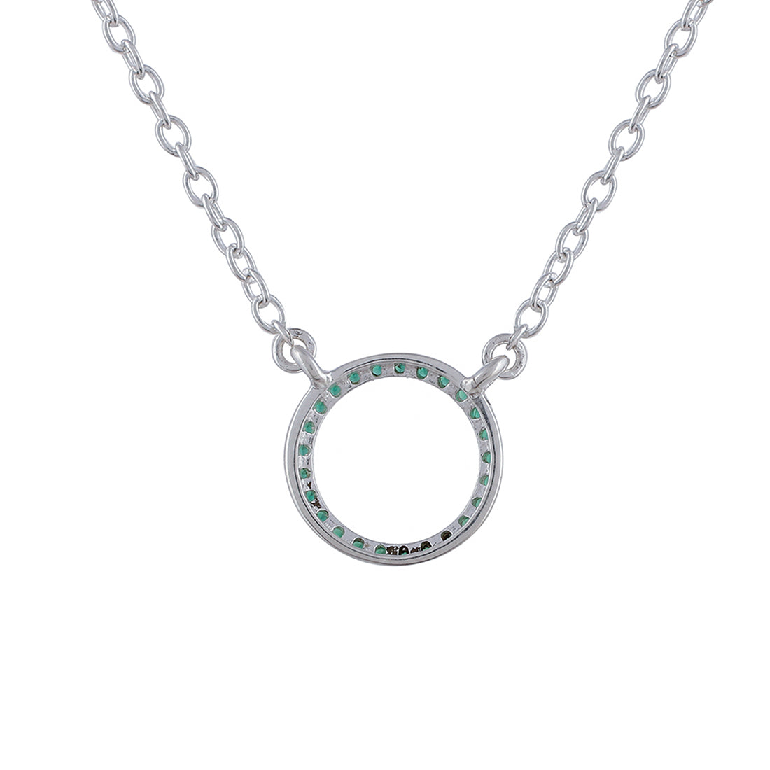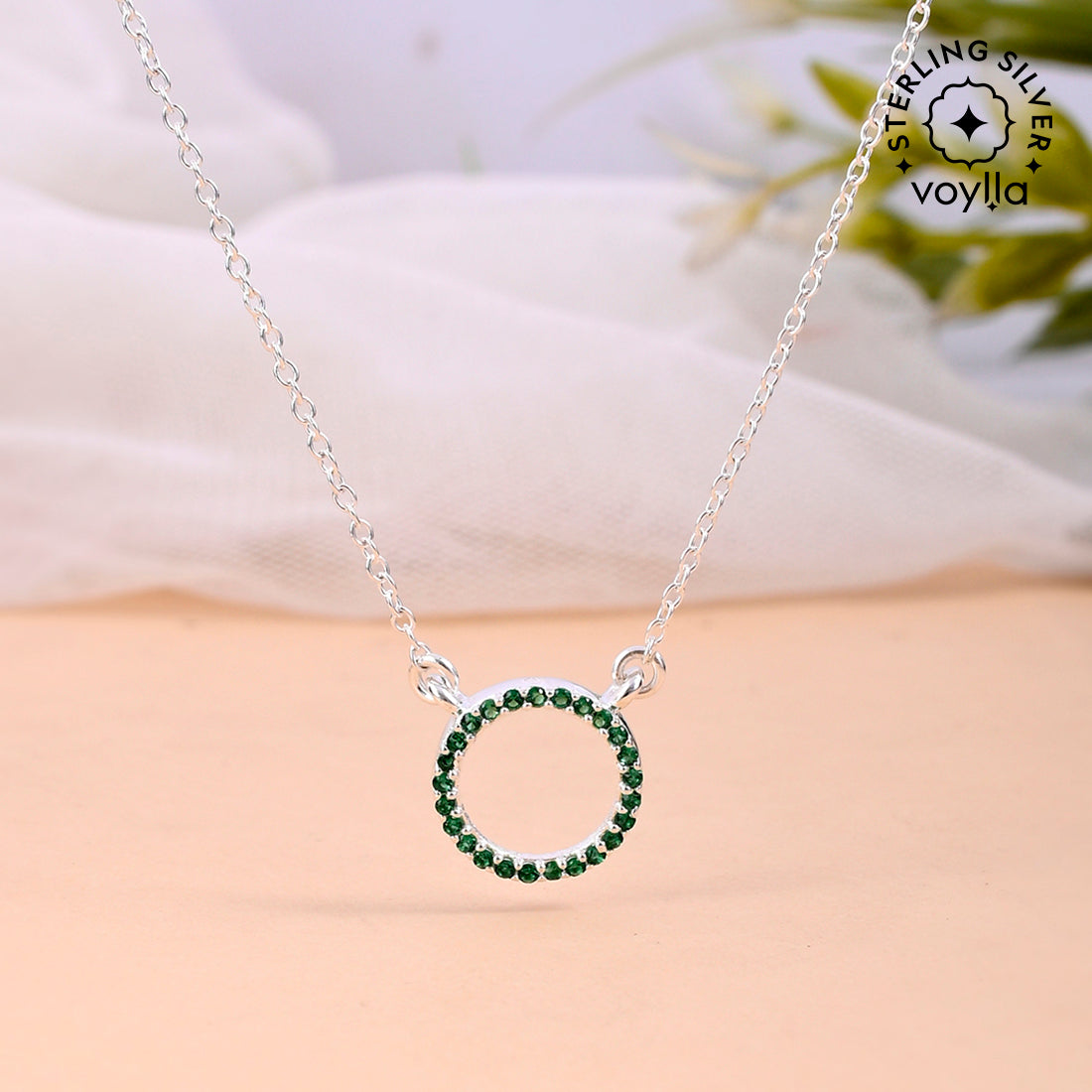 Stunning Round 925 Sterling Silver Necklace with Green CZ