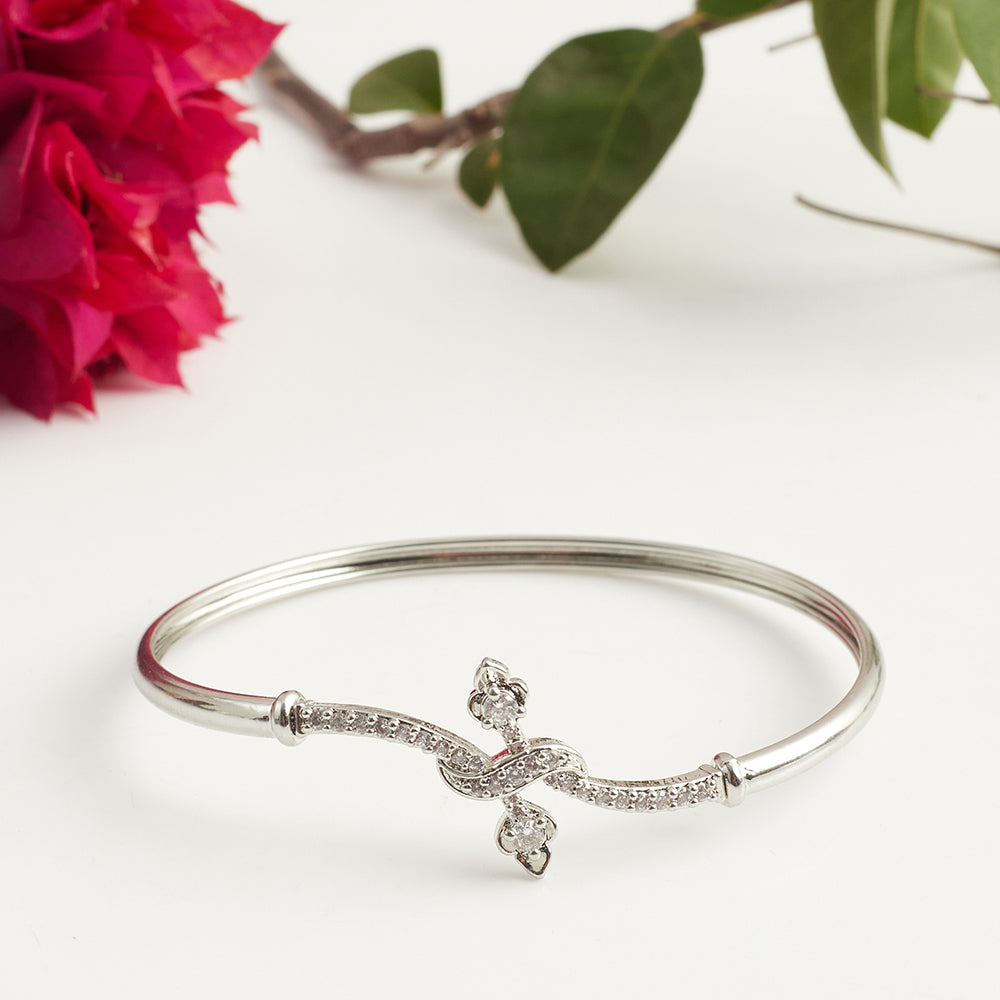 The correct bracelet can make the difference to create a dazzling appearance and a boring one. Your jewellery collection will benefit from the addition of this timeless silver wristband bracelet, which can enhance any outfit for any event. silver finishes add a stylish touch to every ensemble. You'll feel like a Greek goddess wearing this gorgeous bracelet, which also accentuates your sense of fashion and personality. Rhodium overlay, wristband style and the beautiful centerpiece define the extravagant beauty of this handpiece.