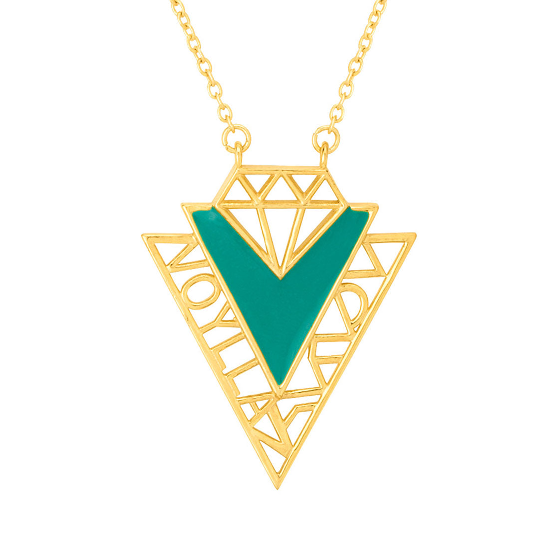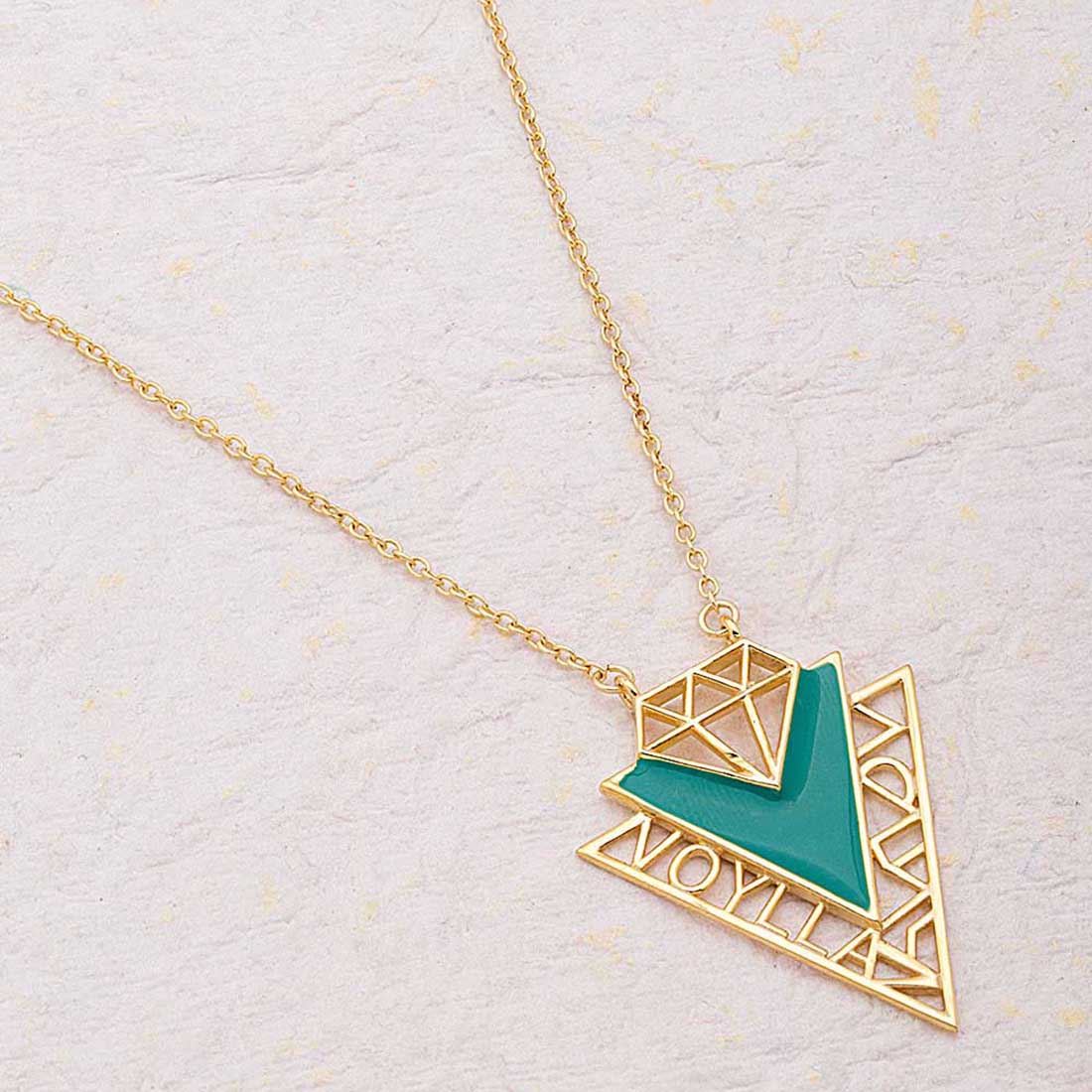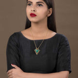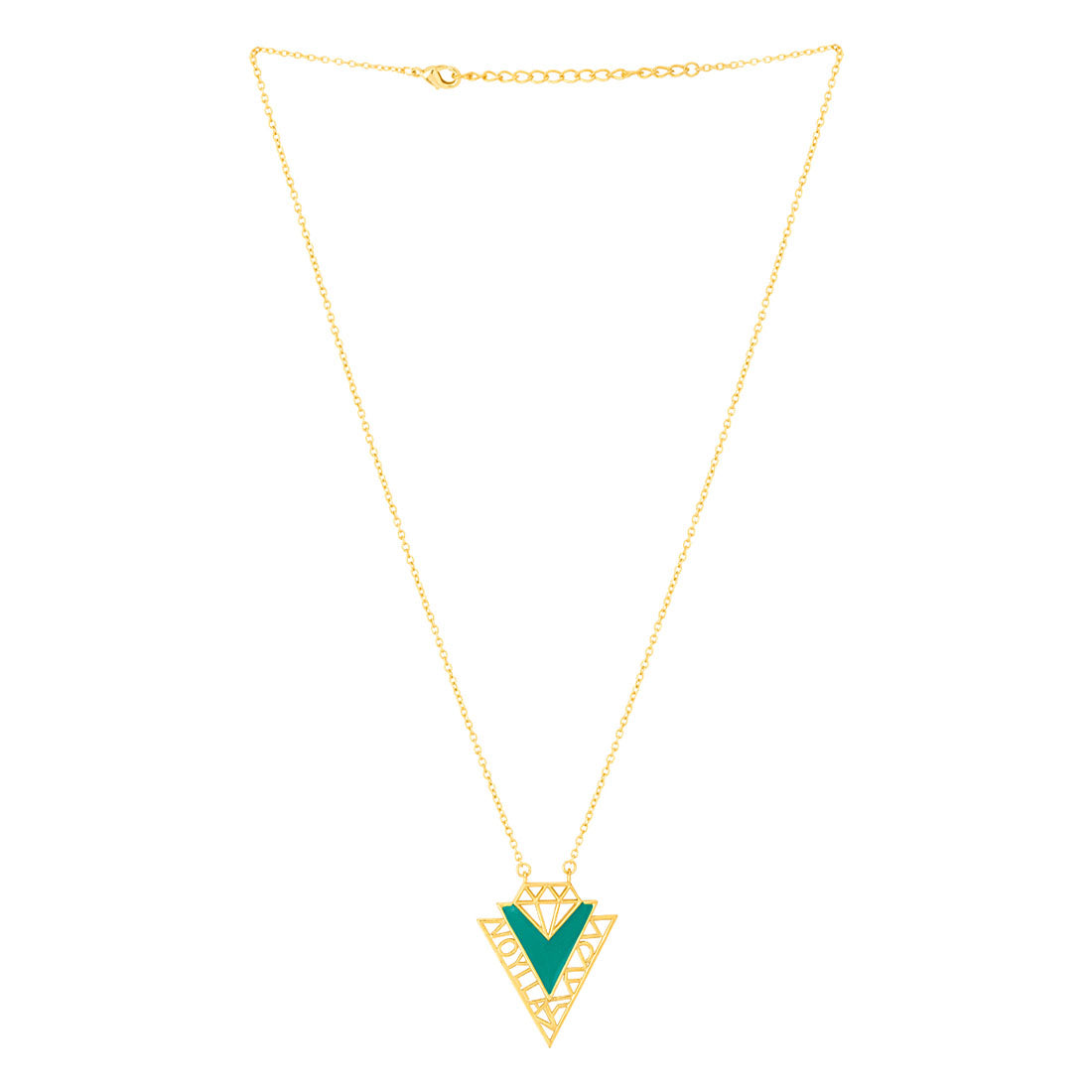 Stand out from the crowd with this breathtaking necklace from the house of Voylla. Featuring a classy Voylla logo design with green enamel work. Team this pair with your favourite outfit.