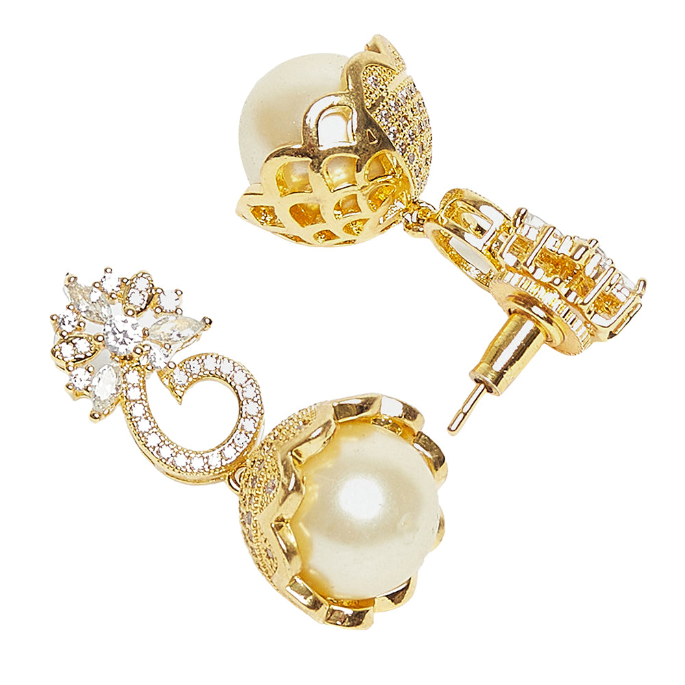 These lovely gold plated earrings set in a beautiful ethnic design, are a must-have if you love traditional jewelry. Decorated with a unique and delicate pattern, these perfectly crafted drop earrings will definitely add a brilliant sparkle to every traditional or Indo-Western outfit that you wear them with. While these brass earrings go well with just about everything, they will look exceptionally pretty with casual kurtas.