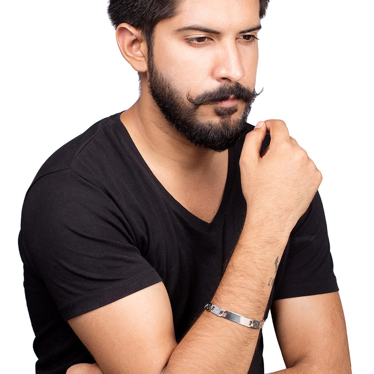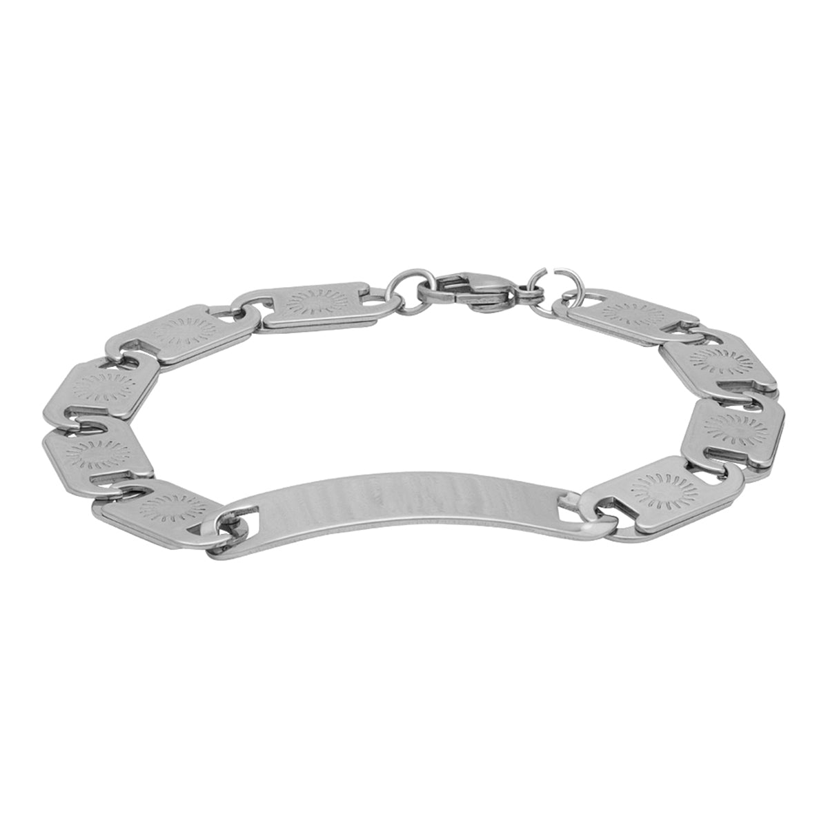 Hurry up and grab this silver plated sun design engraved over link designer bracelet this season. Wear this piece with attire of your choice and be the center of attraction in the crowd.