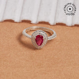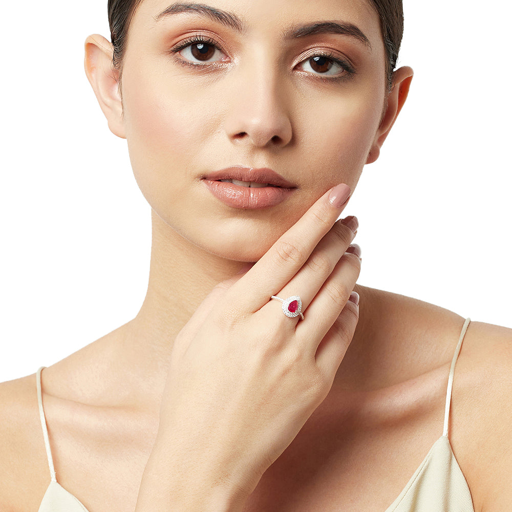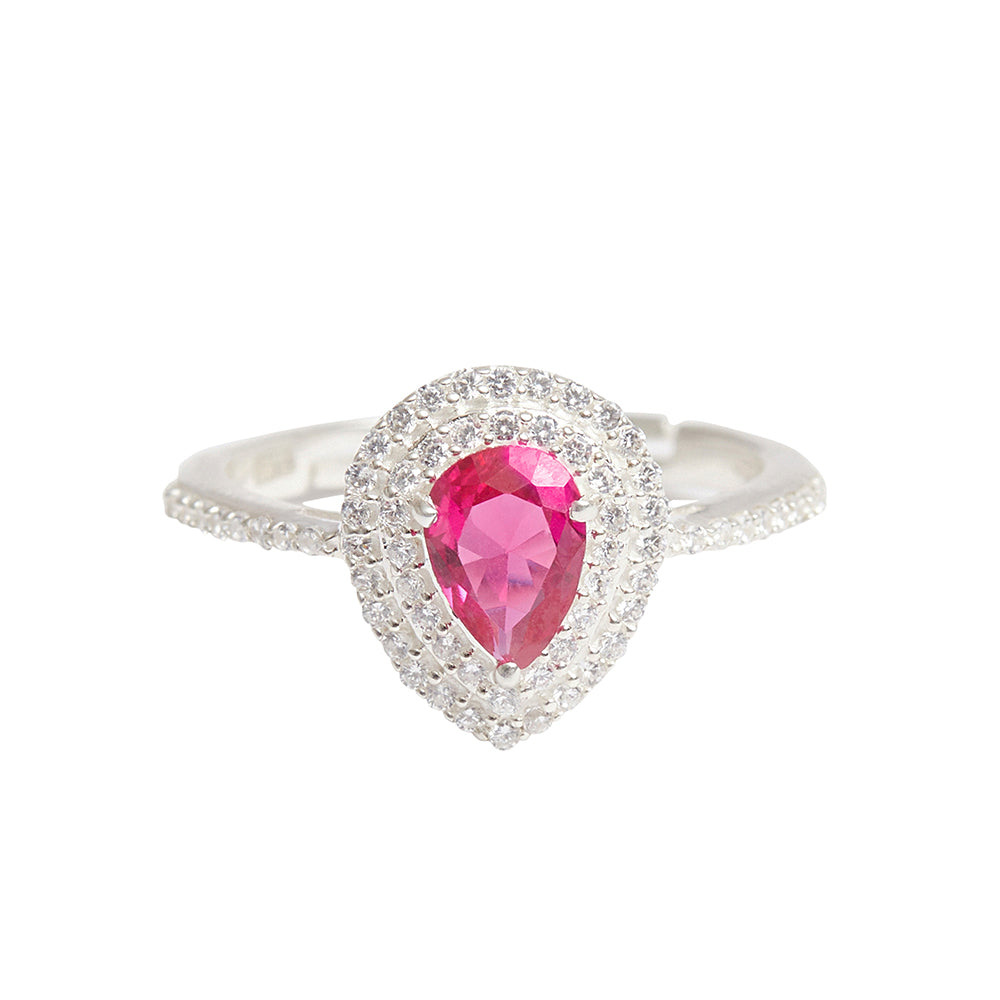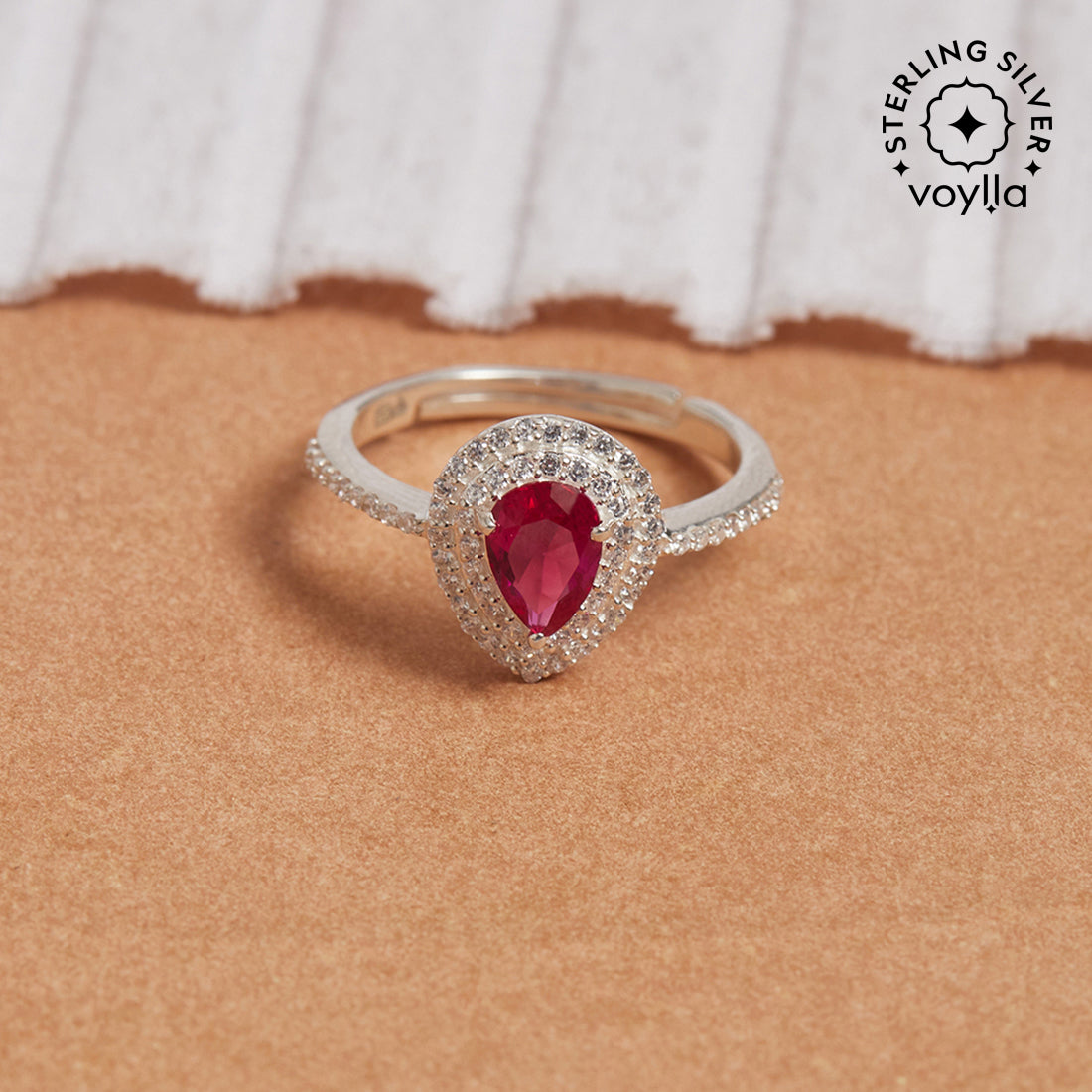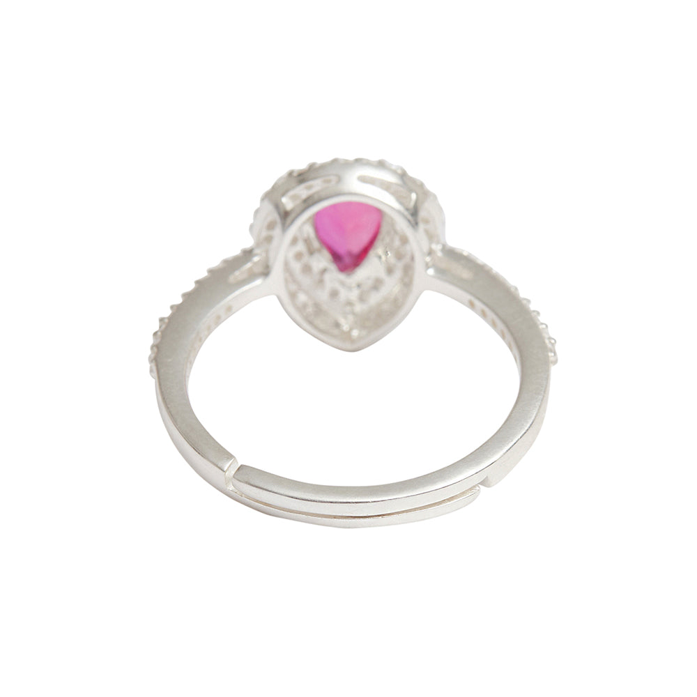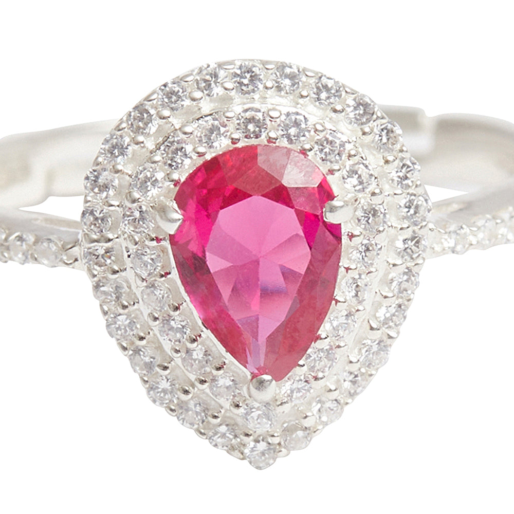 Sushine Tear Shaped Ruby Stone CZ Studded 925 Sterling Silver Adjustable Ring