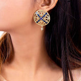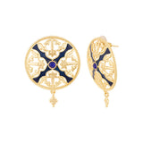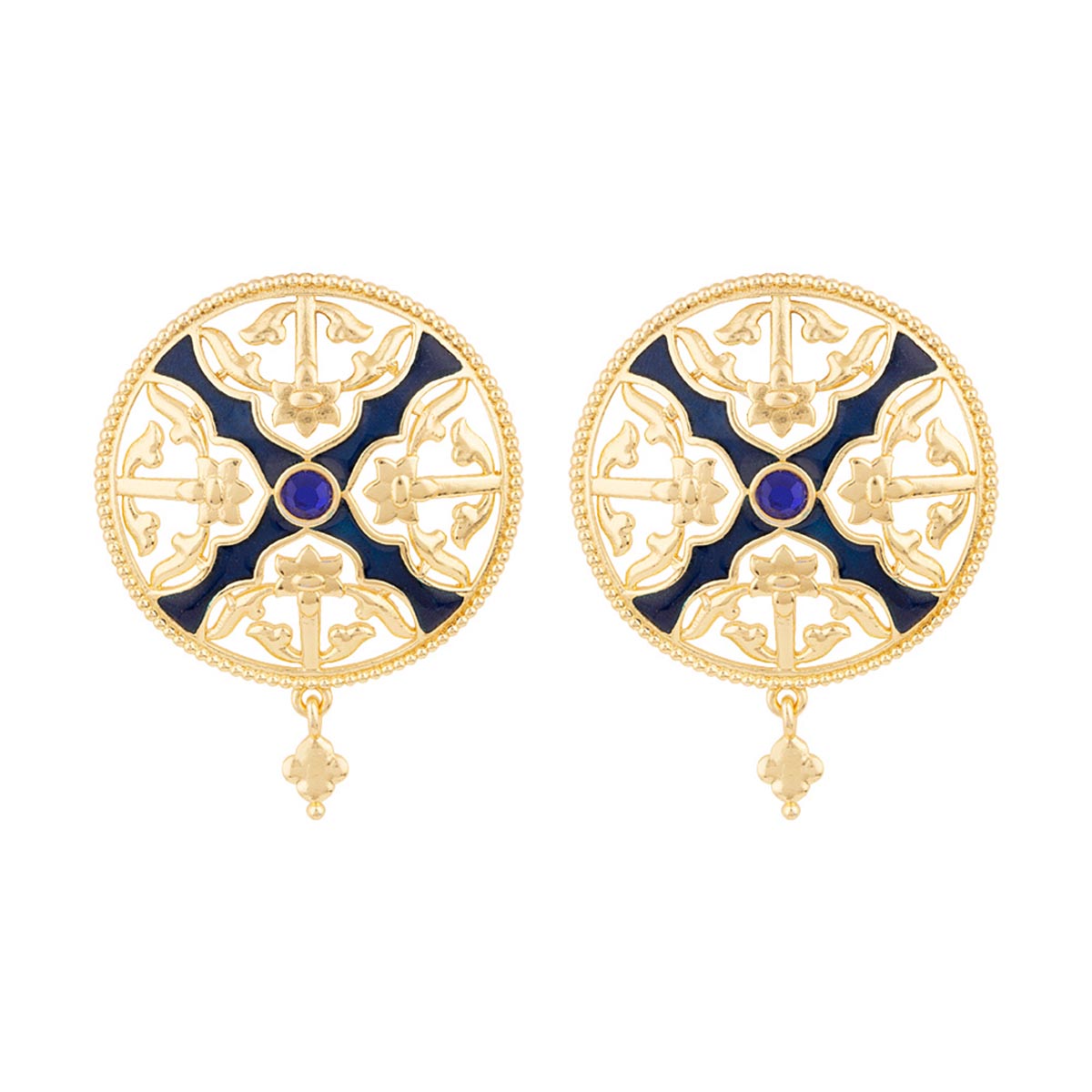Filigree dome earrings made from brass and yellow gold plated. Enameled and a good match for casual looks of all kinds.