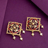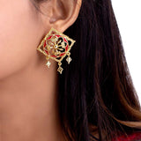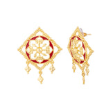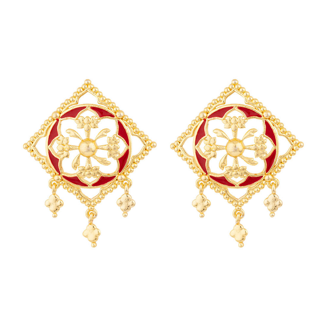 Rangoli inspired earrings, enameled and crafted from brass. Yellow gold plated, lightweight and comfortable.