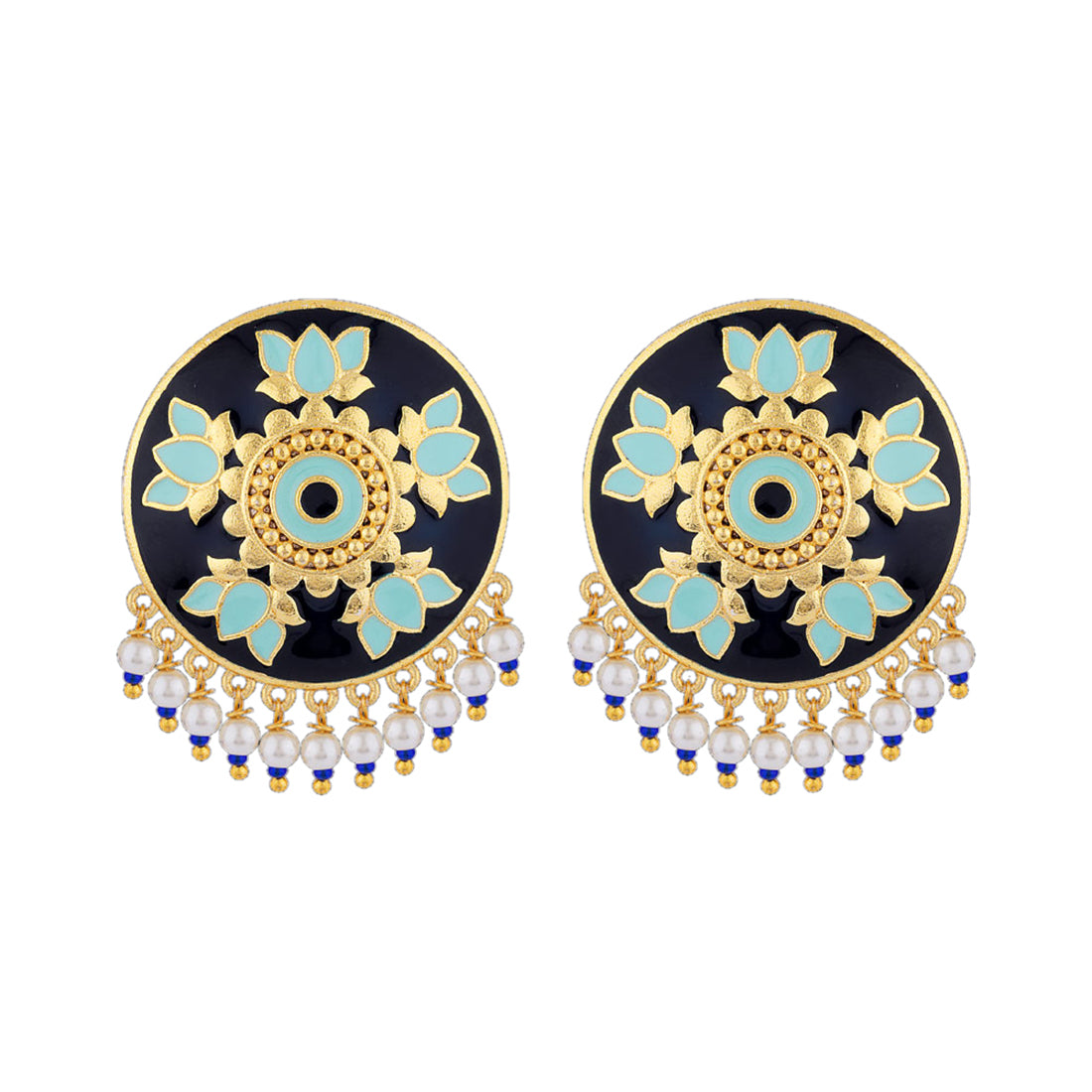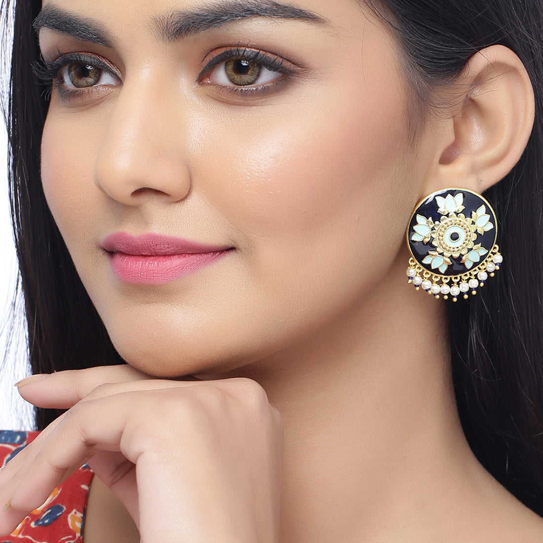 Gorgeous blue petals with mini pearls, the Tahira Blue Lotus Studs are a glamorous pick.