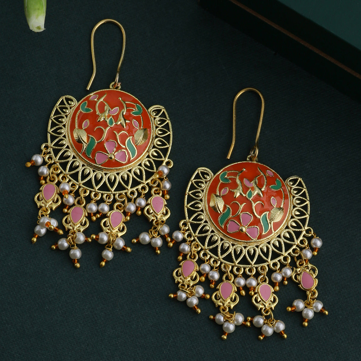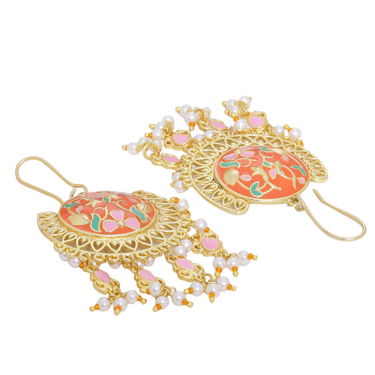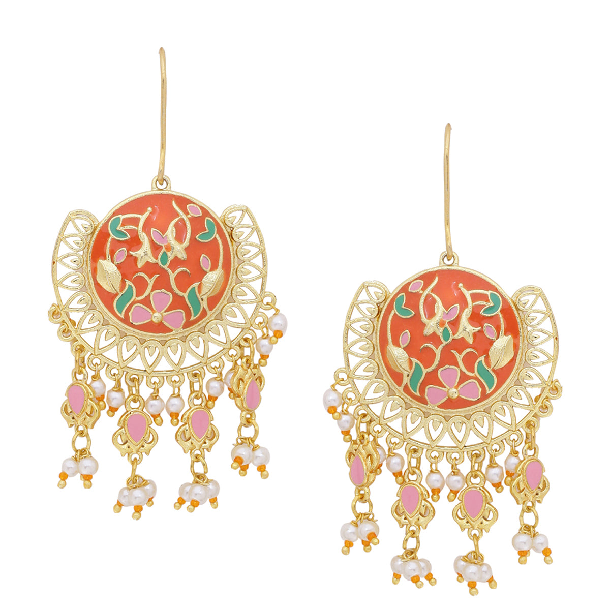 Chand Bali designs get a makeover with the Tahira Orange Bloom Chand Bali Earrings.