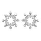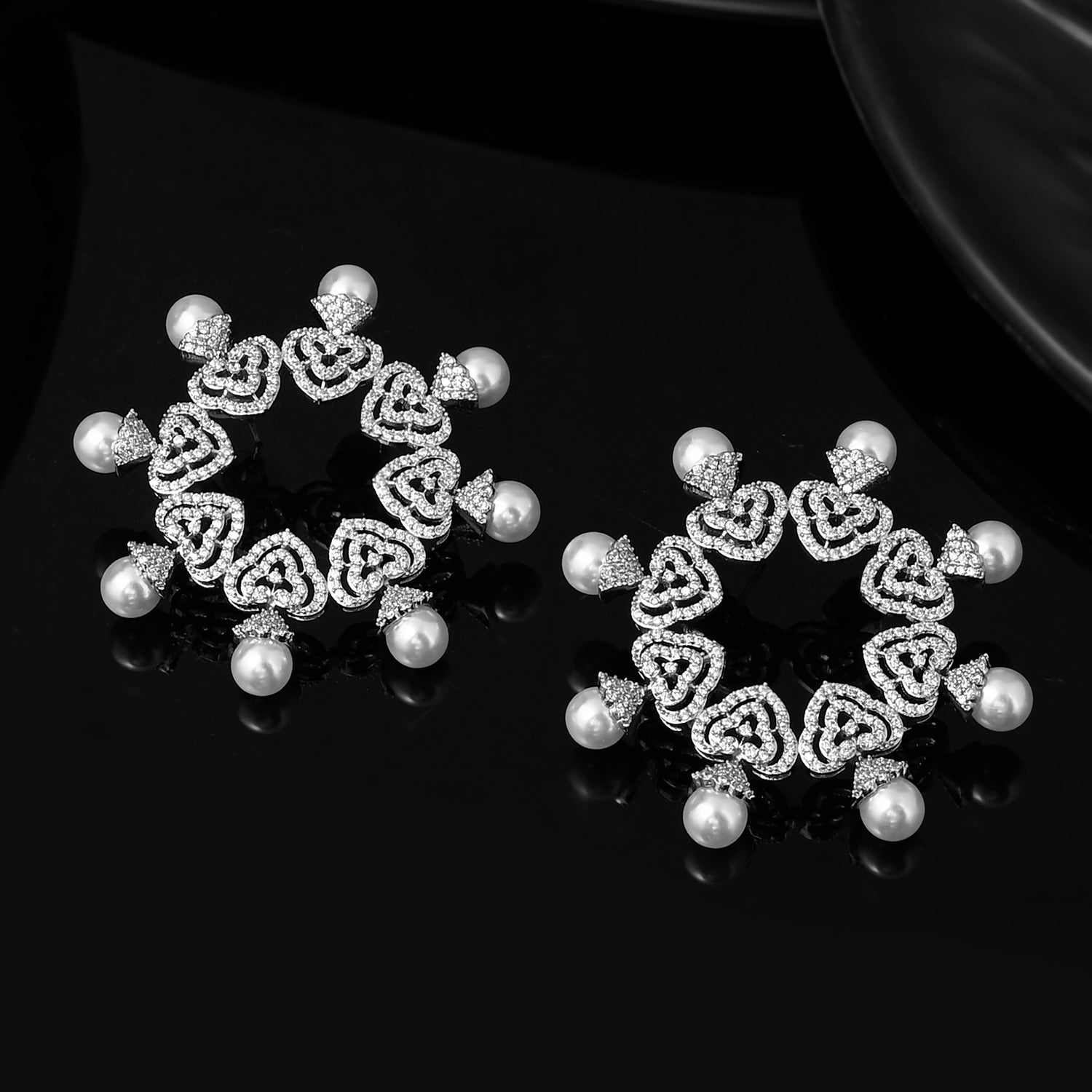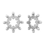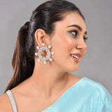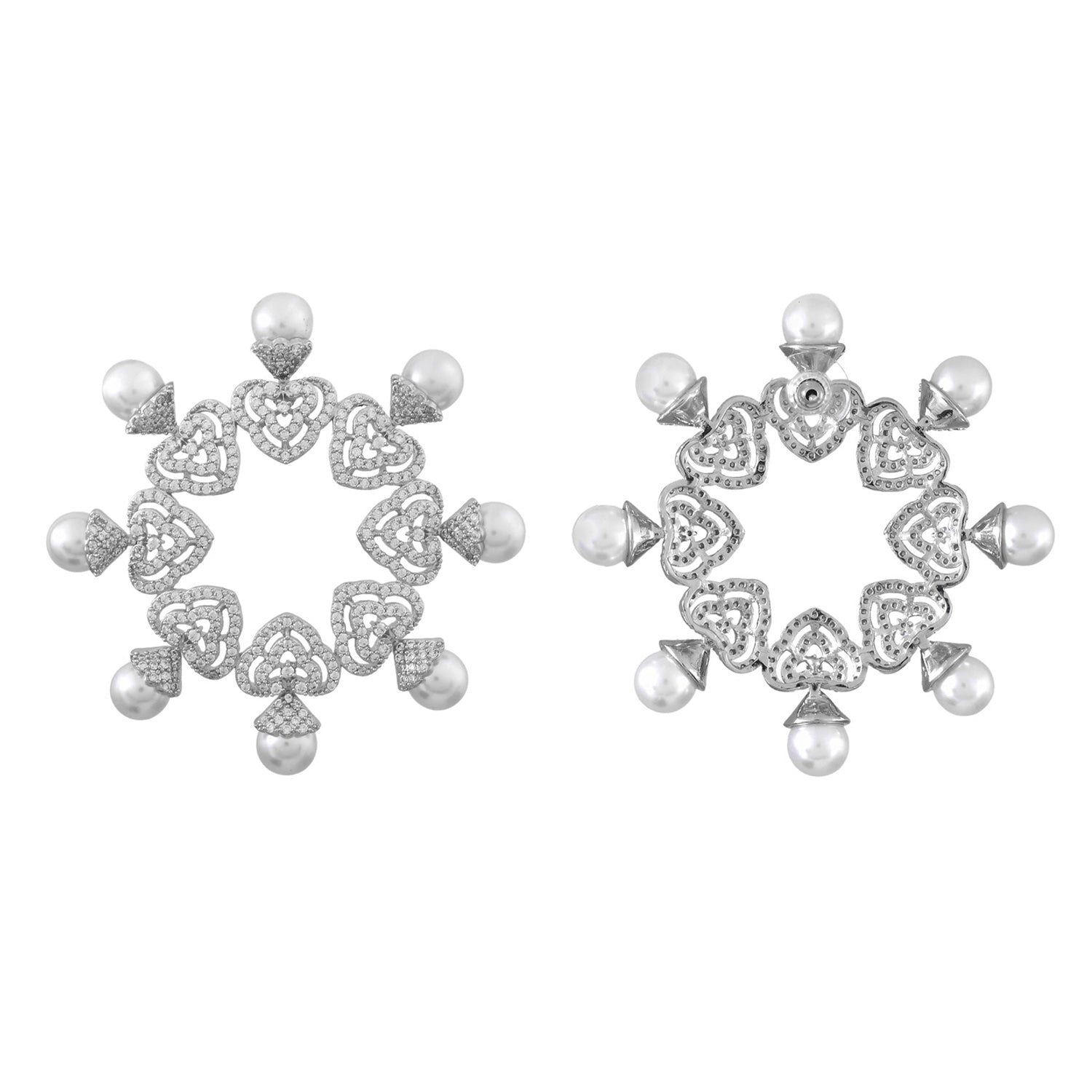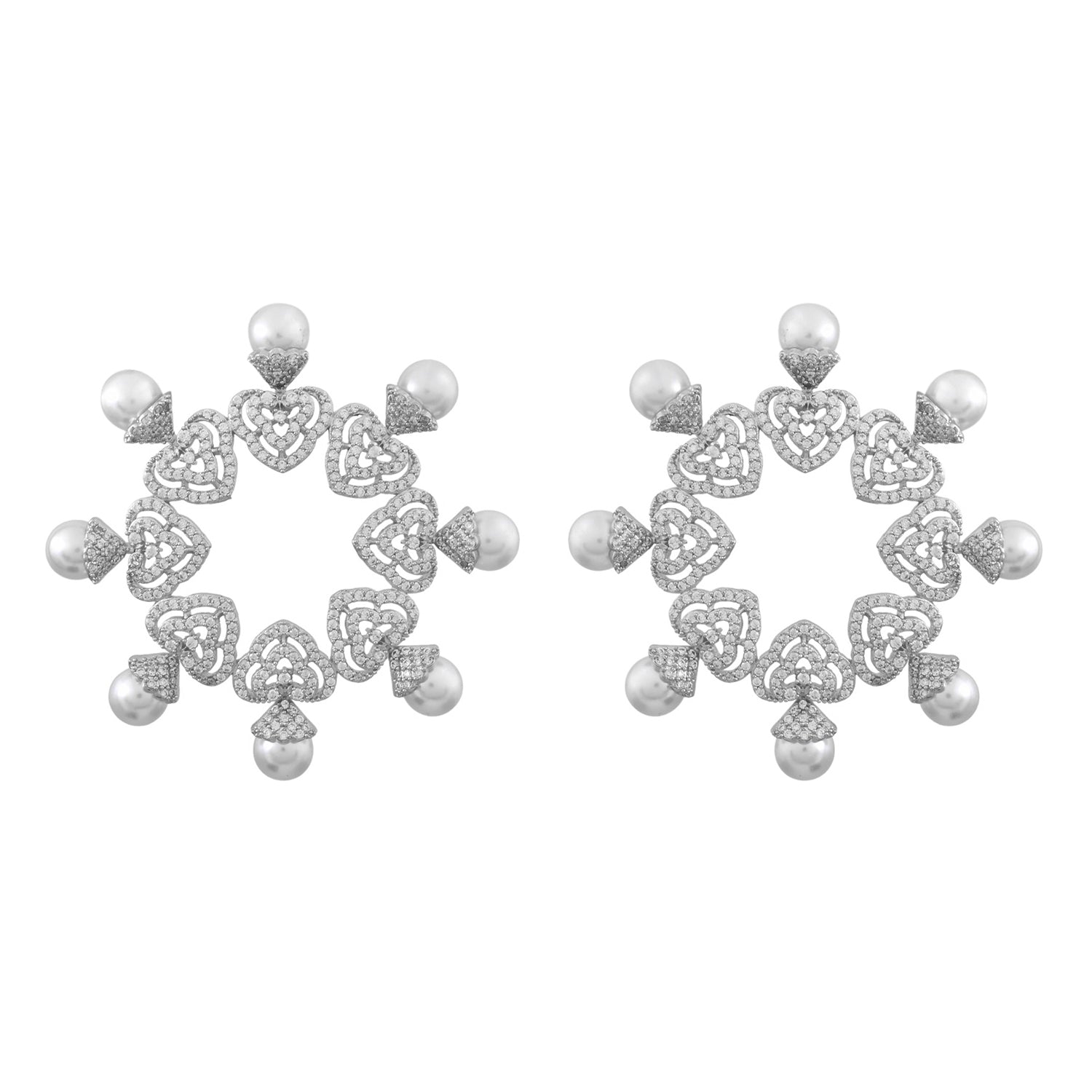 Inspired by the beauty and grace of the Taj Mahal, and fashioned into an edgy design, these round earrings have been crafted from brass of the highest quality. Embellished with zirconia gemstones in a cluster setting and white pearls, the silver plated earrings can be paired with any of your favourite outfits.